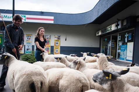 Clinamen is an NGO that breeds sheeps in the popular neighborhoods located in the northern part of the French capital. Shepherds are volunteers, who help handling the flock in the urban environment. The shepherds move the sheeps around this territory to make them graze, and use sheeps as tool for social cohesion. The NGO also sells wool and meat.