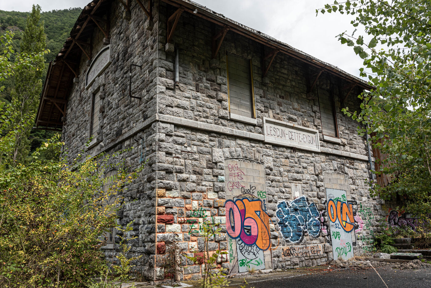 In 1928, the rail connection between France and Spain has through the Pyrenees mountains was completed. But in 1973, a freight train fell into the river and one of the many bridges on the french side collapsed. There is no train between the two countries on this railway line ever since. But the line could be rebuilt in 2024. Here is what the abandoned railway line looks like on the French side.