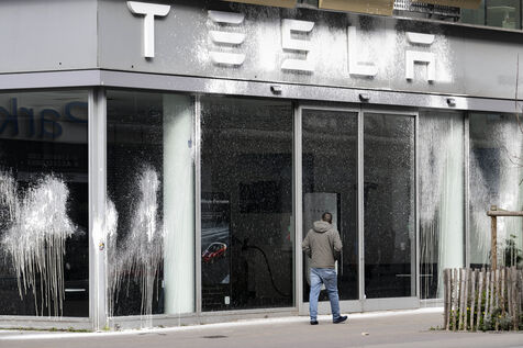 Activists spray Tesla France headquarters with white paint