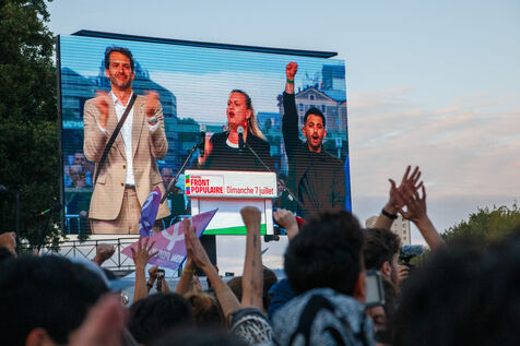 At LFI headquarters, the victory of the left in the 2nd round of legislative elections - Paris - July 7, 2024