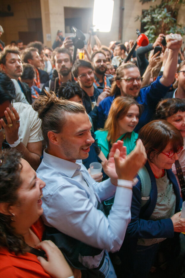 Au siège de LFI, la victoire de la gauche au 2nd tour des élections législatives - Paris - 7 juillet 2024