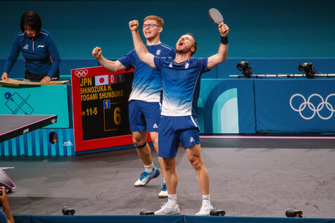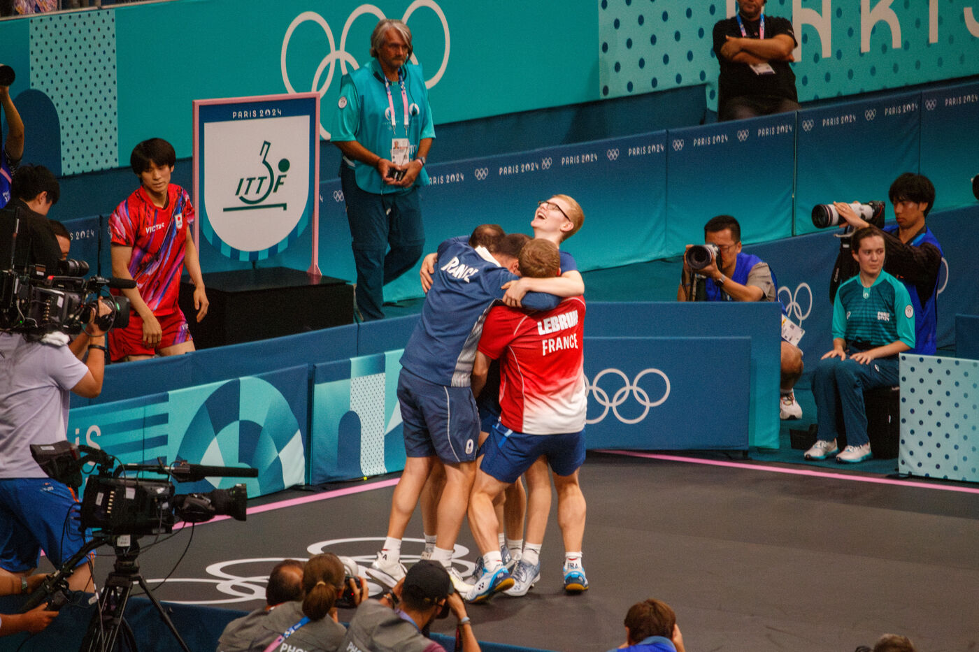 La victoire de l'équipe de France en tennis de table, lors du match pour la médaille de bronze, Jeux Olympiques Paris 2024 - Paris - 8 août 2024