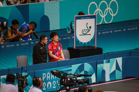 Historic victory at the Porte de Versailles for the French table tennis team, composed of Simon Gauzy, and the two Lebrun brothers, Alexis and Simon, trained by Nathanaël Molin. The team bronze medal is a first for France in this discipline.