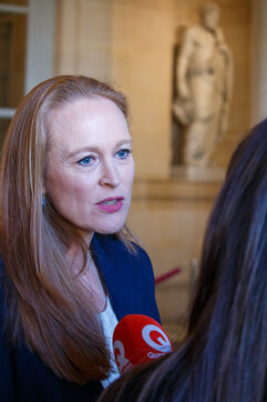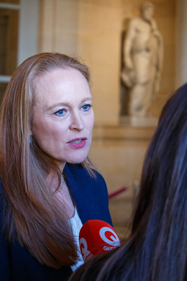 Rapporteur MPs Violette Spillebout and Paul Vannier, as well as committee chair Fatiha Keloua-Hachi, before their round table with representatives of victims' groups, a cycle of hearings as part of the inquiry into the modalities of state control and the prevention of violence in schools, MPs of the inquiry commission of the Committee on Cultural Affairs and Education in the Lamantine room of the National Assembly in Paris, France on March 20, 2025.