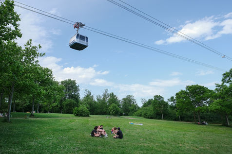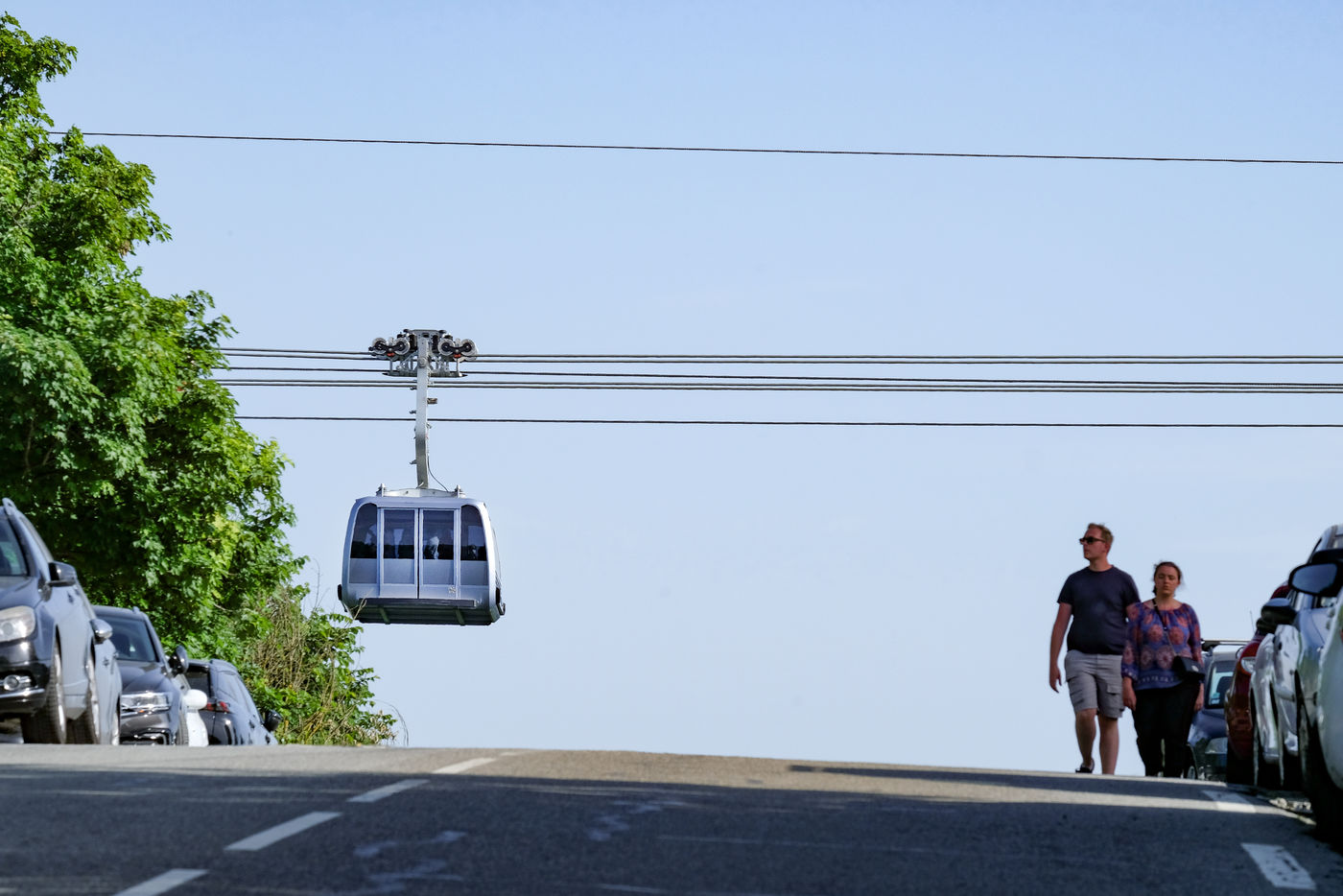 Inauguration of the Téléo cable car operated by the public transport network of Toulouse and its region Tisséo and built by Poma, in the presence of the president of the Occitanie Region Carole Delga, the mayor of Toulouse Jean-Luc Moudenc, the prefect of Haute-Garonne Etienne Guyot, the president of Tisseo Jean-Michel Lattes, the former mayor of Toulouse and deputy secretary-general of the United Nations Philippe Douste-Blazy, and the former mayor of Toulouse Pierre Cohen The cable car connects the Paul Sabatier University to the Oncopole via the Rangueil Hospital. It passes over the hills of Pech David and crosses the Garonne. Its 3 kilometers length makes it the longest cable car in France. The trip lasts 15 minutes. Its rhythm is 1 cabin every 90 seconds.