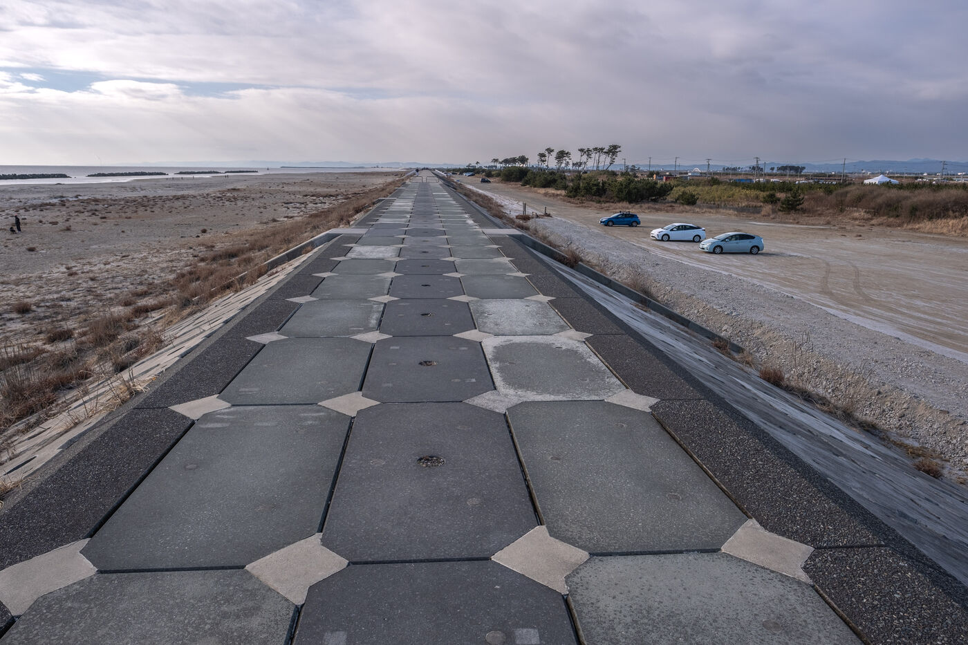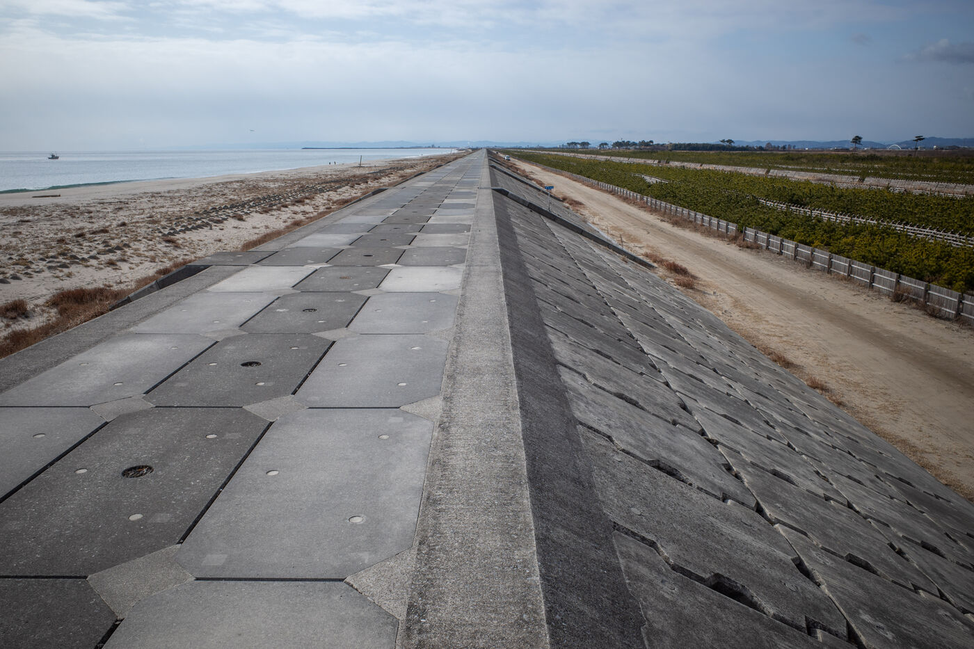 It is a real concrete wall that now stands on the entire coastline of Sendai Bay and the northeast coast. The reaction of the Japanese authorities to the disaster of 2011, which cost the lives of nearly 20,000 people, was to pour a huge amount of concrete along the coast. The dikes built are between 5 and 15 meters high. They are supposed to protect the inhabitants of the lowlands from the advancing sea in case of a tsunami, or at least to slow down its course to allow people to evacuate to safe ground. Beyond the questionable effectiveness of such a proposal, it is a whole geographical and mental organization that is turned upside down. The links between land and sea are destroyed, the estuaries and river mouths are now dammed up, purely and simply blocked by colossal works. This unleashing was done for the benefit of Japanese construction companies, big winners of this reshuffling of the maps. The inhabitants have to learn to live without being able to look at the sea as they used to do.