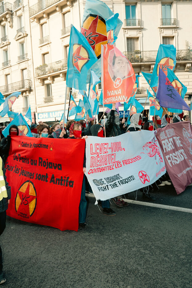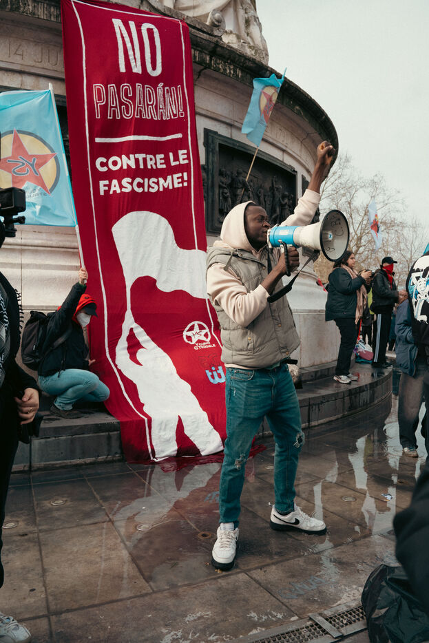 Following the violent attack on antifascist activists by far-right militants, a demonstration was organized by Young Struggle on February 22 at Place de la République in Paris.
