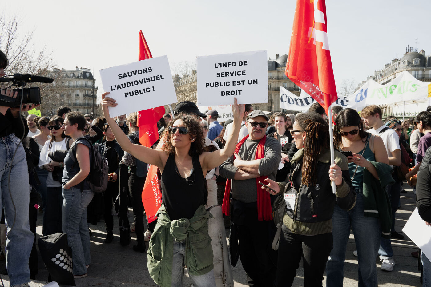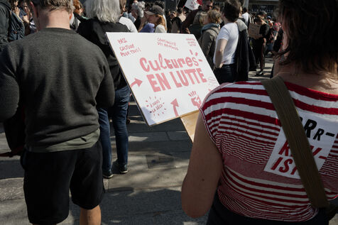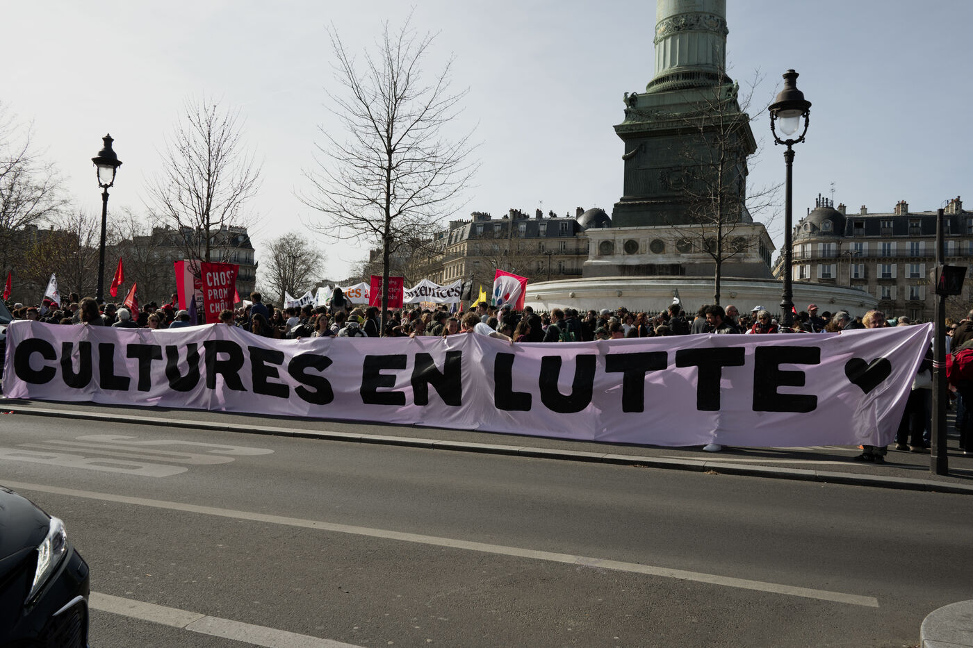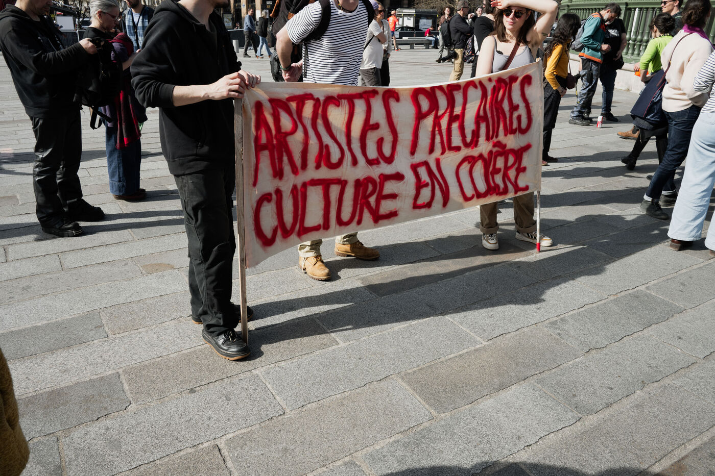 Demonstration by intermittent workers and employees of cultural institutions against the government's cuts in funding for culture, in particular the Culture Pass, in Paris, France on March 20, 2025.