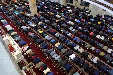 LES FIDÈLES MUSULMANS EFFECTUENT LA PREMIÈRE PRIÈRE TARAWIH DU SOIR