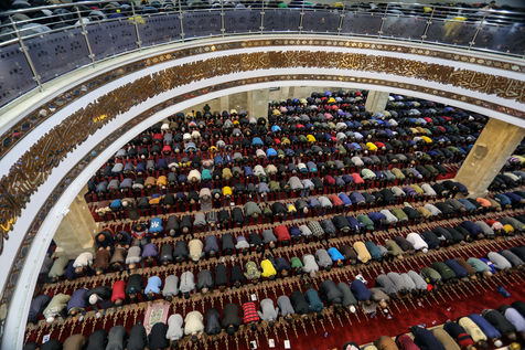 MUSLIM WORSHIPPERS PERFORM THE FIRST EVENING TARAWIH PRAYER
