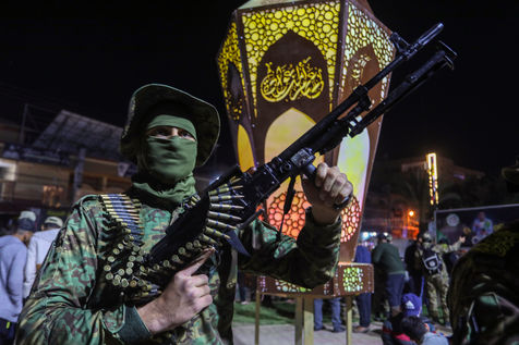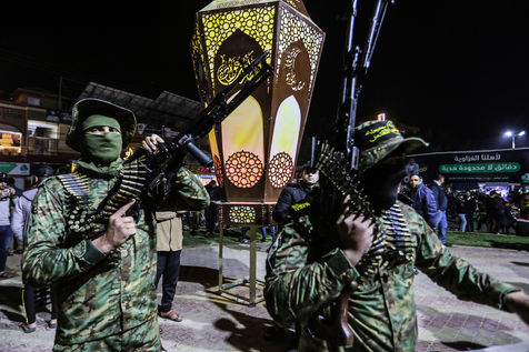 RAFAH, GAZA STRIP - APRIL 02. Members of Saraya al-Quds, the military wing of the Islamic Jihad movement in Palestine, participate in a military parade against Israel, in the city of Rafah in the southern Gaza Strip, on April 2, 2022.