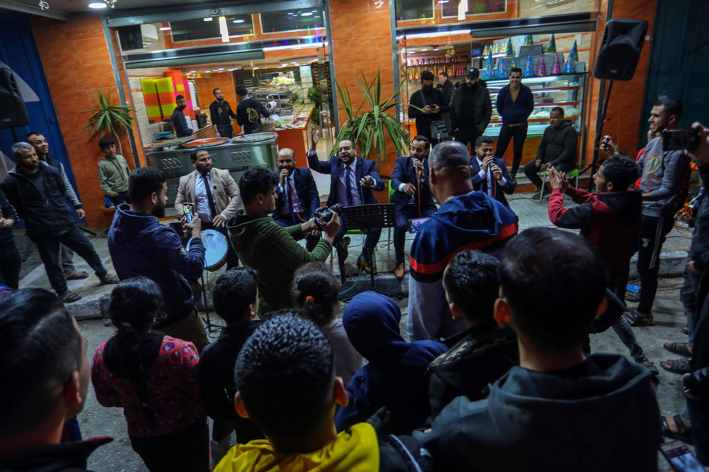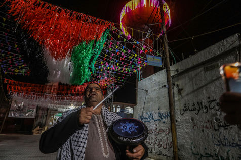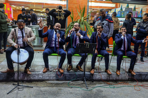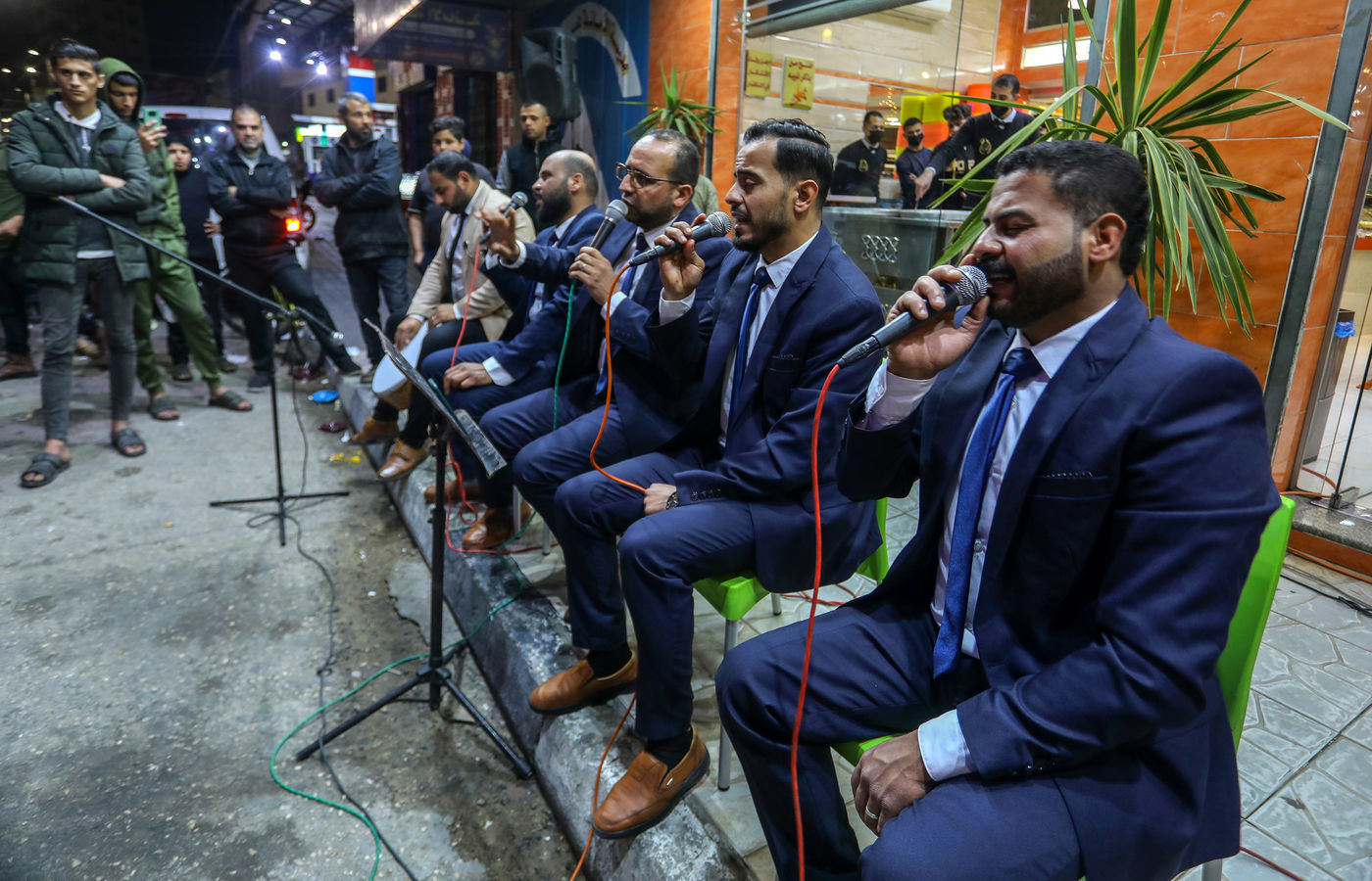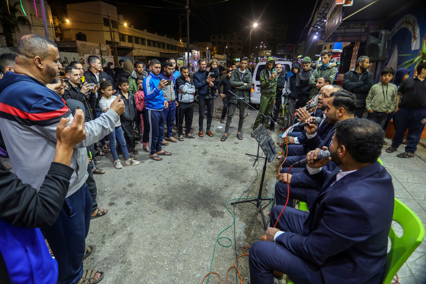 RAFAH, GAZA STRIP - APRIL 04. A Palestinian group of Islamic praise sings of Ramadan, the holy month, in a street in the city of Rafah in the southern Gaza Strip, on April 4, 2022.