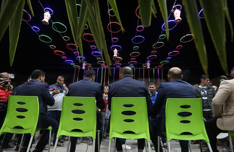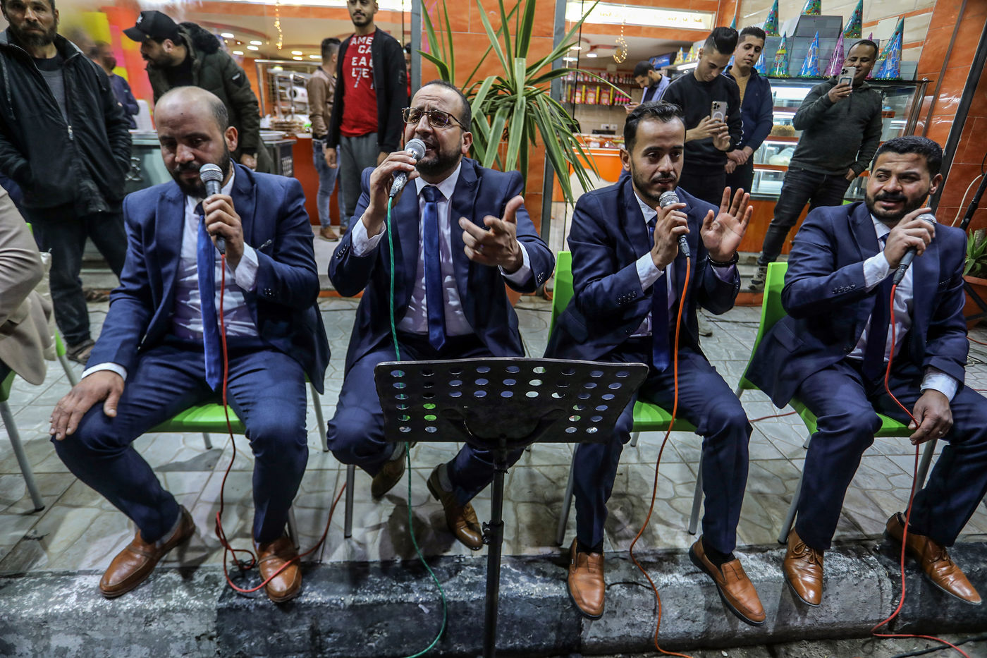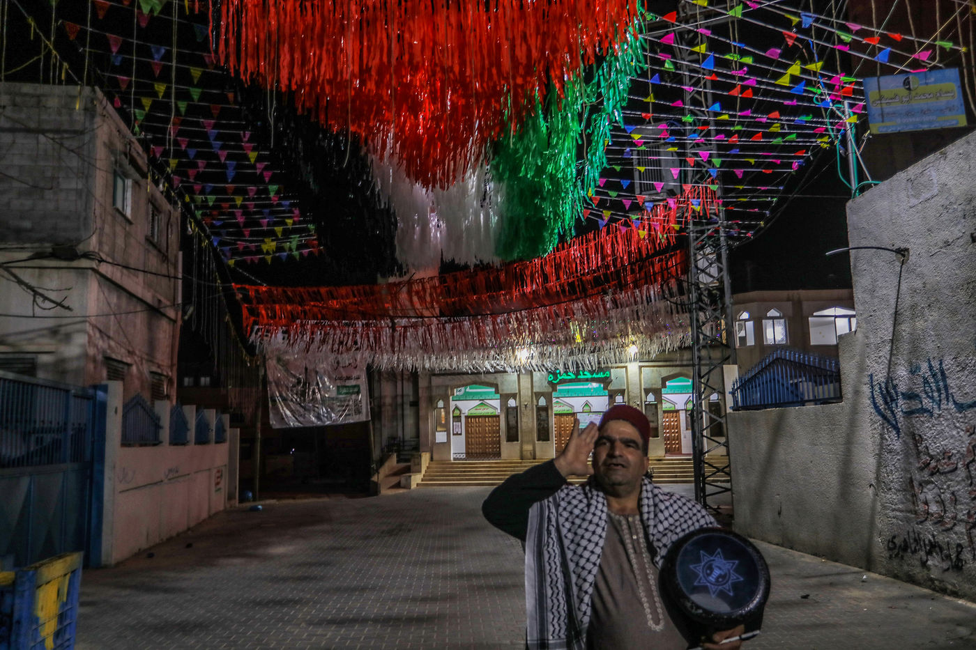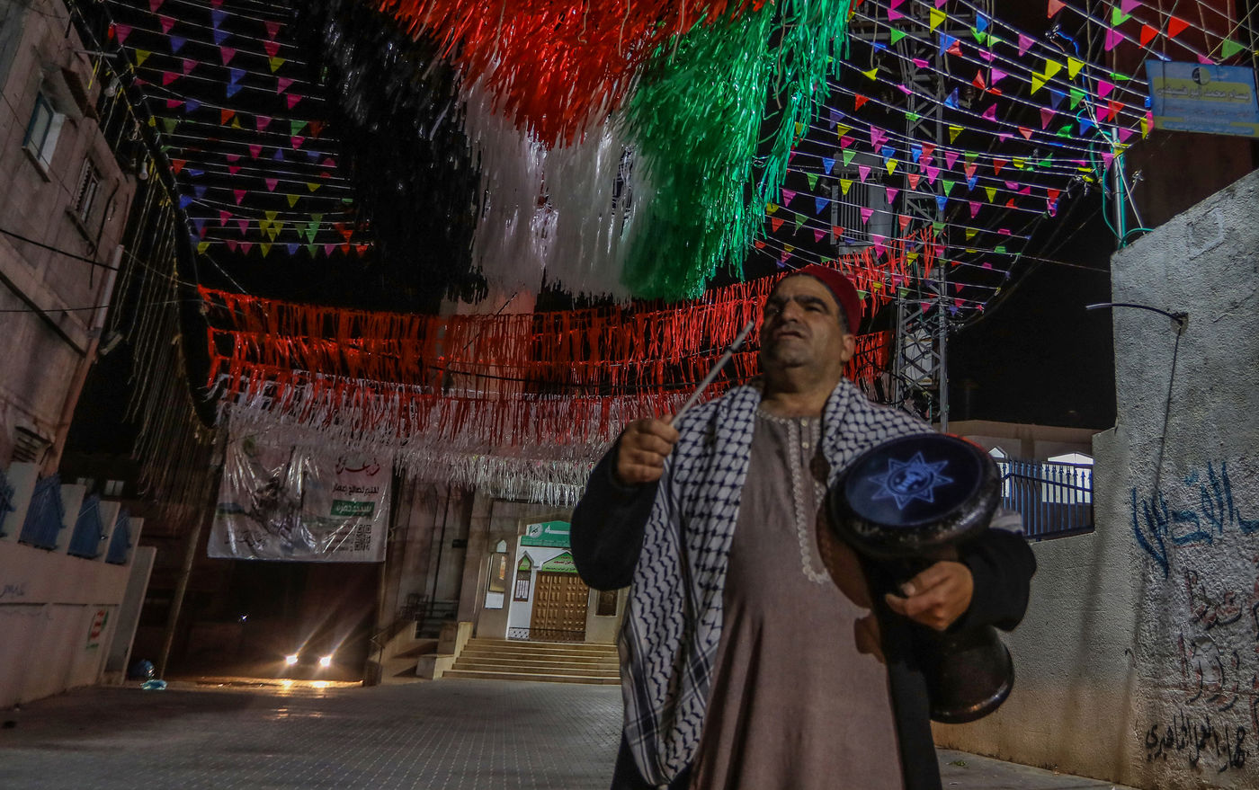 RAFAH, GAZA STRIP - APRIL 04. A Palestinian group of Islamic praise sings of Ramadan, the holy month, in a street in the city of Rafah in the southern Gaza Strip, on April 4, 2022.