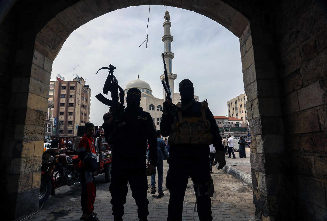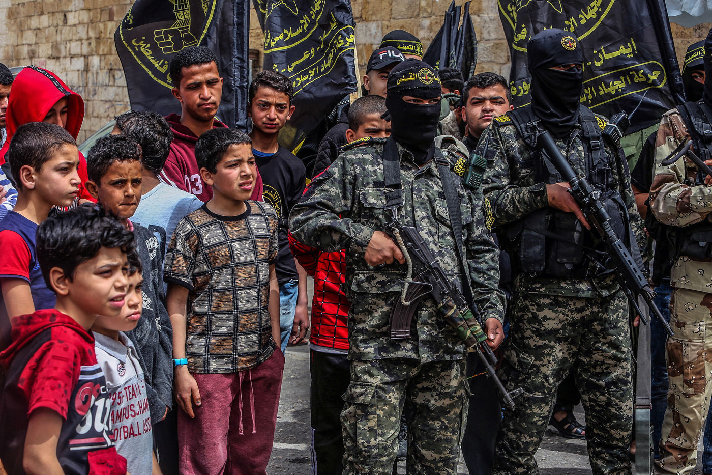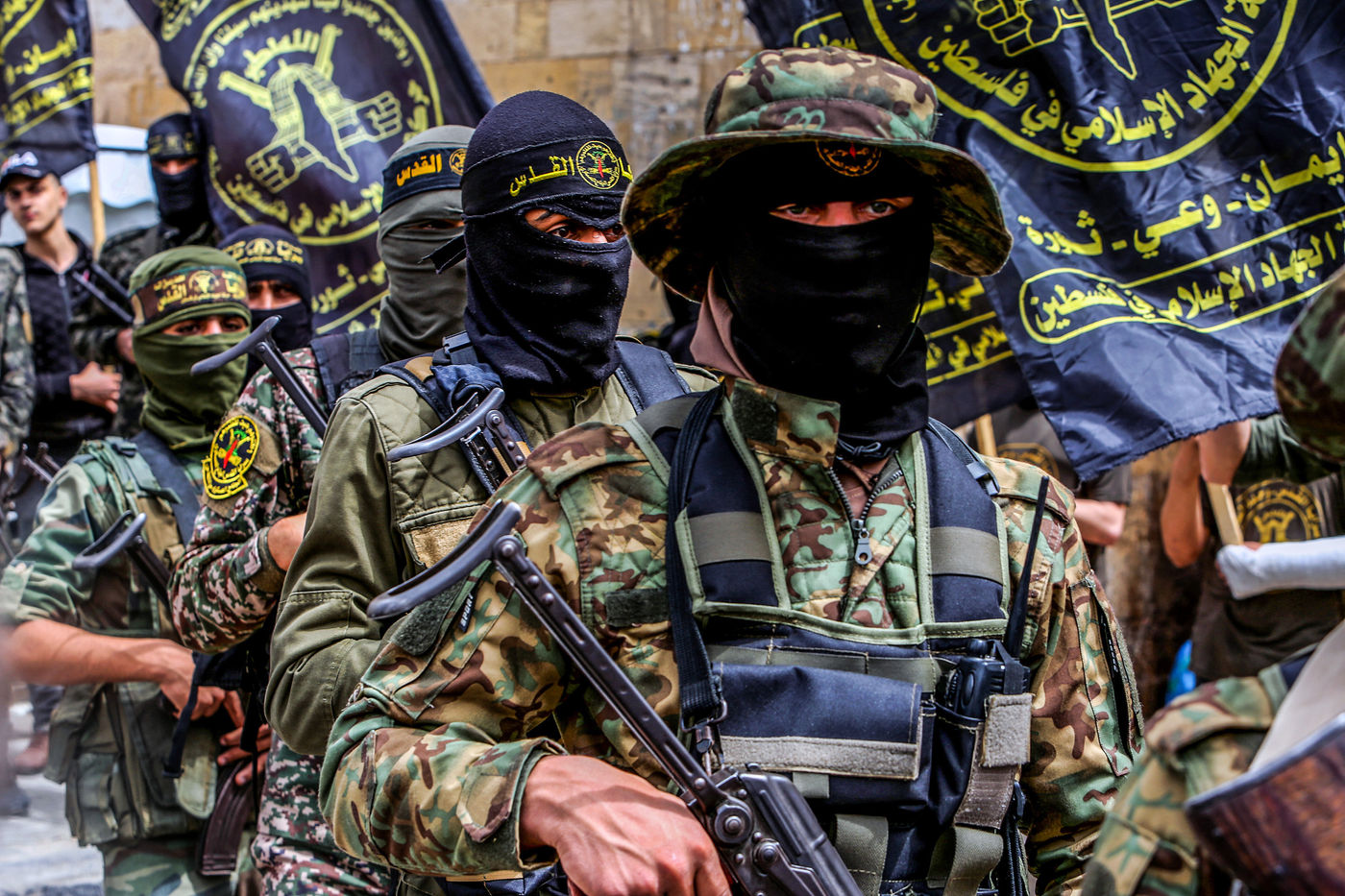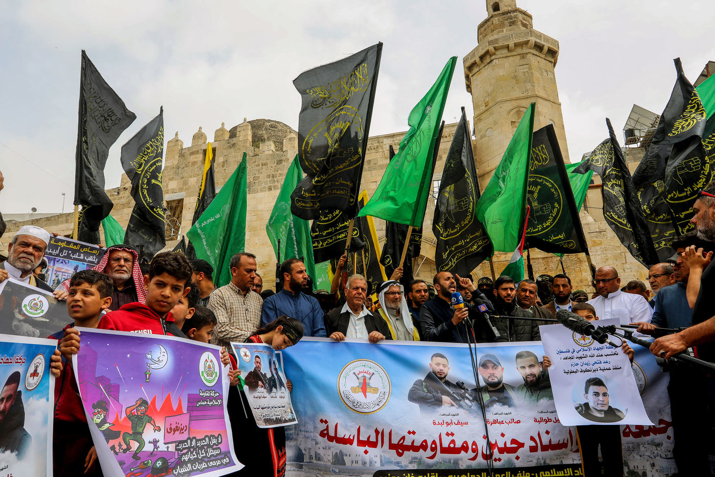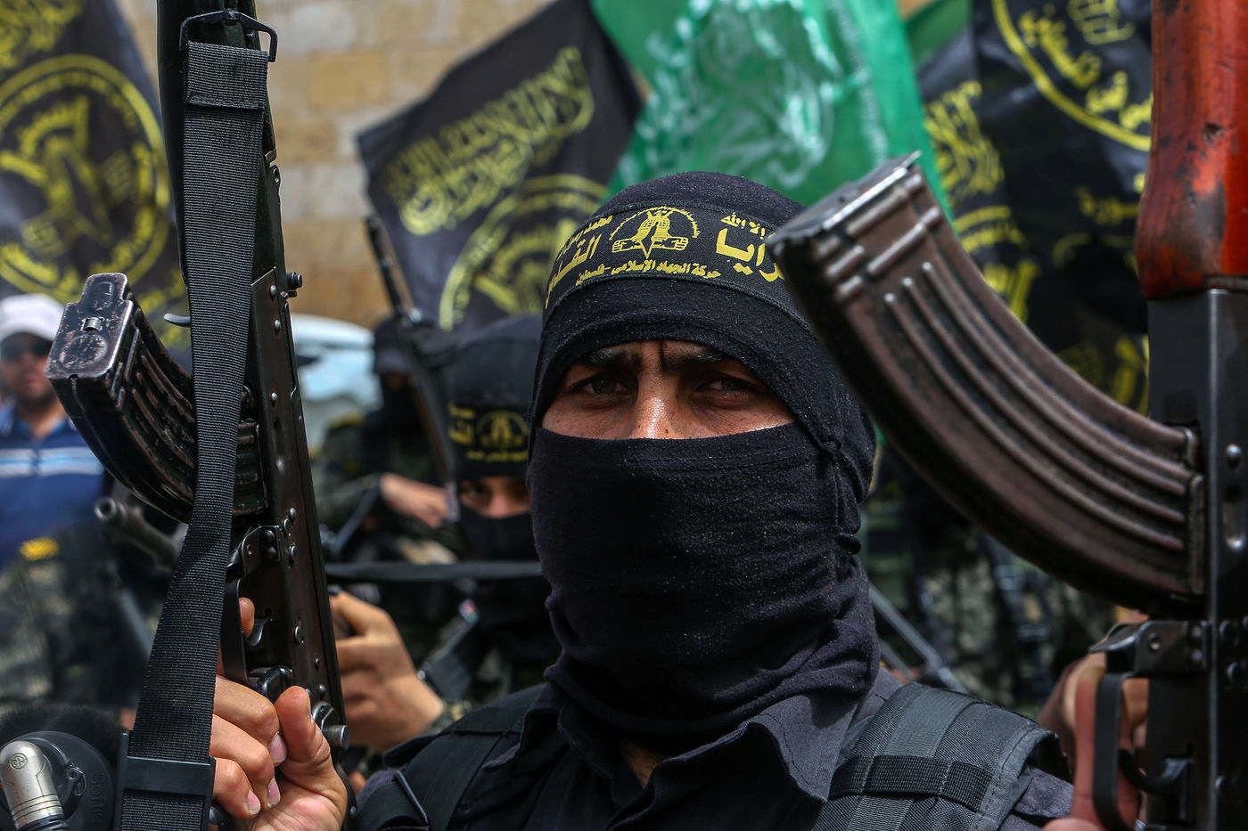KHAN YOUNES, GAZA STRIP - APRIL 08. Supporters of Hamas and Islamic Jihad take part in a rally to celebrate the shooting attacks in Israel, in the southern Gaza Strip, on April 8, 2022. Palestinians celebrate the shooting attacks in Tel Aviv, Israel.
