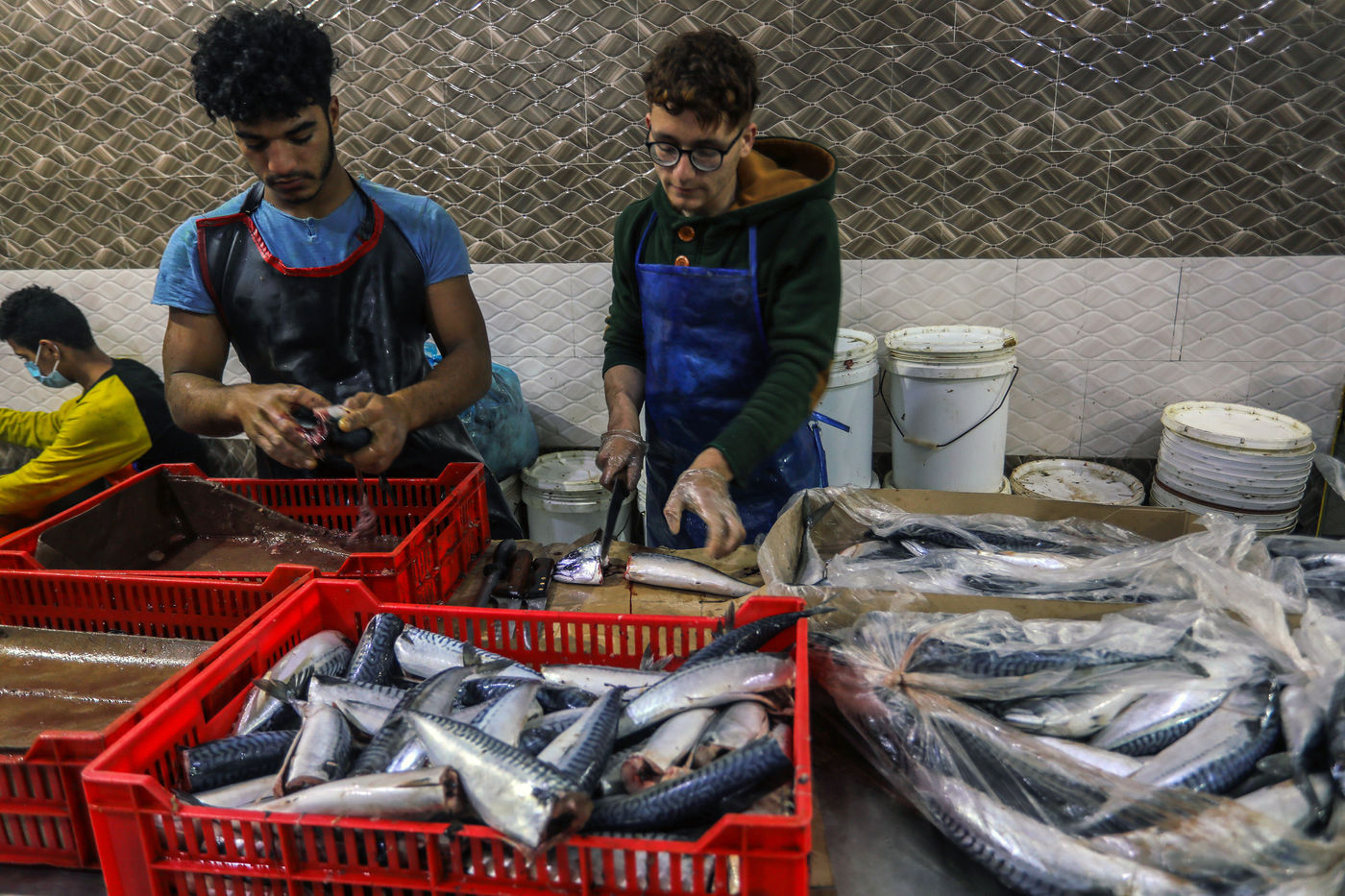 RAFAH, GAZA STRIP - APRIL 18. Palestinians prepare smoked fish (ranga) for sale in the markets, to celebrate the upcoming Eid al-Fitr, which comes after the end of Ramadan in the city of Rafah in the southern Gaza Strip, on April 18, 2022.