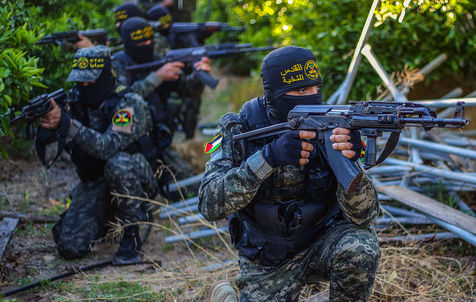 MEMBRES DU MOUVEMENT DU DJIHAD ISLAMIQUE LORS D'UN ENTRAÎNEMENT MILITAIRE À GAZA