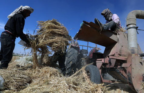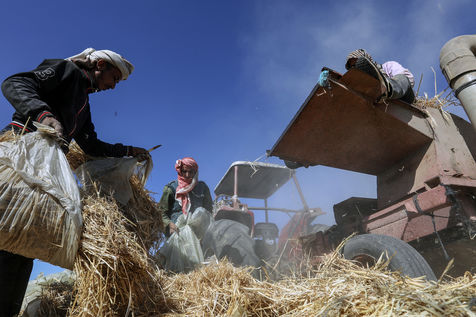 PALESTINIAN FARMERS HARVEST WHEAT DURING THE ANNUAL HARVEST SEASON