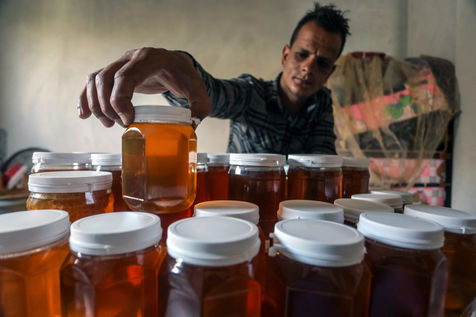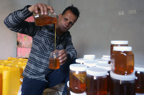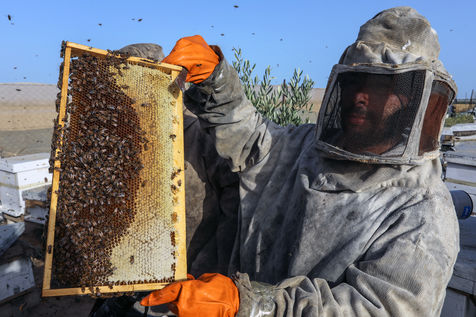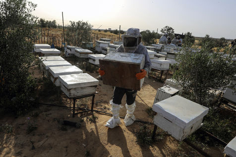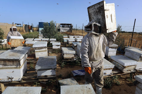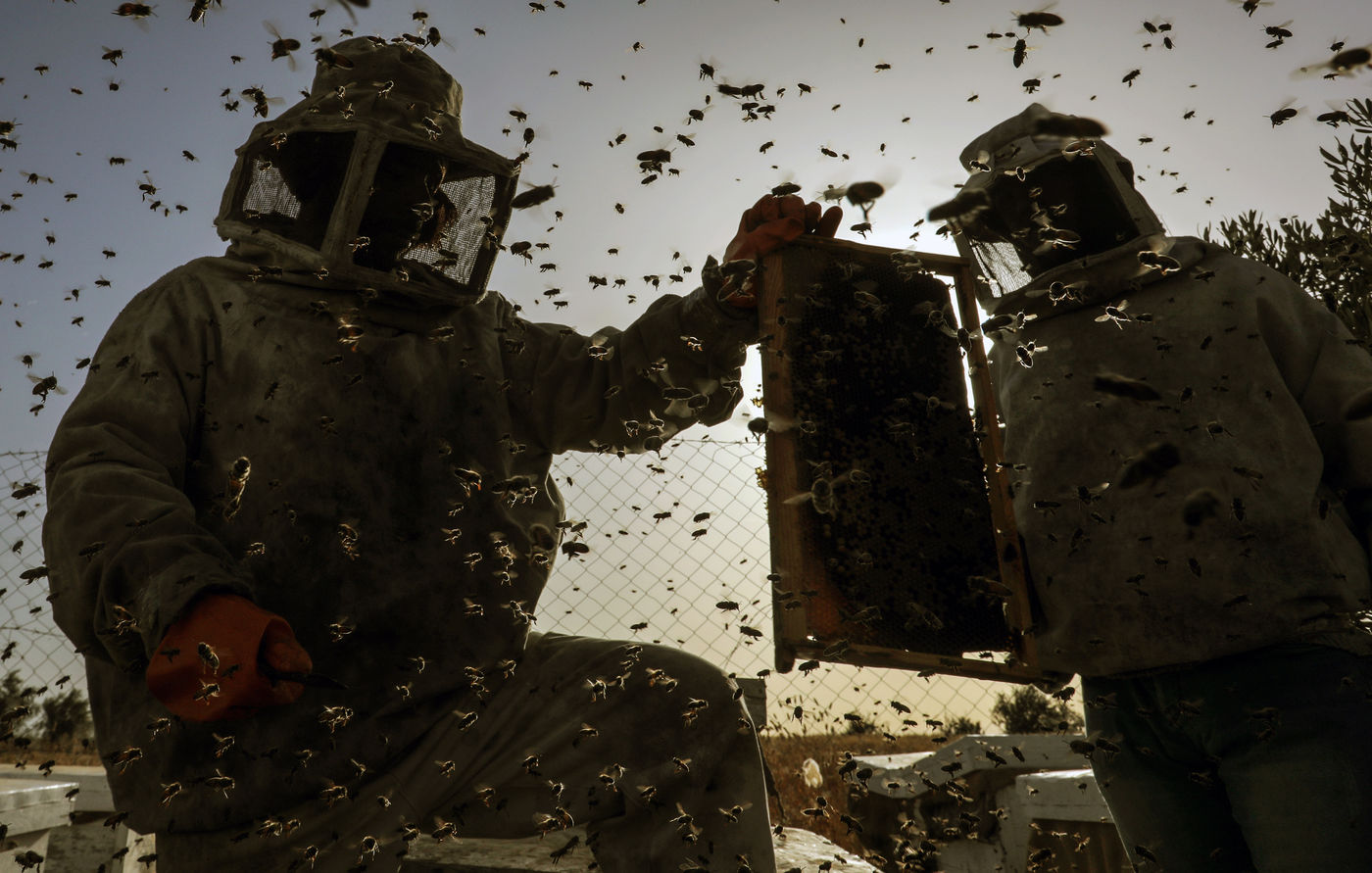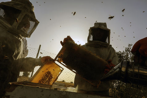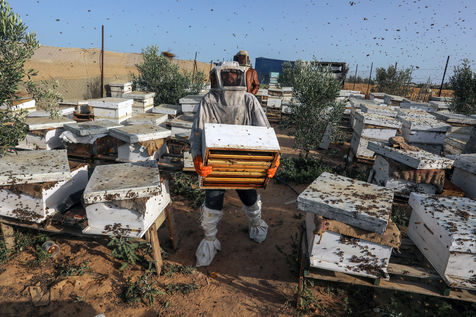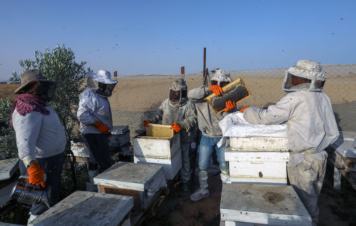 DES PALESTINIENS RÉCOLTENT DU MIEL LORS DE LA RÉCOLTE ANNUELLE DANS LA BANDE DE GAZA