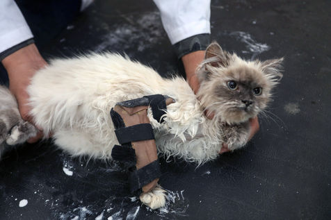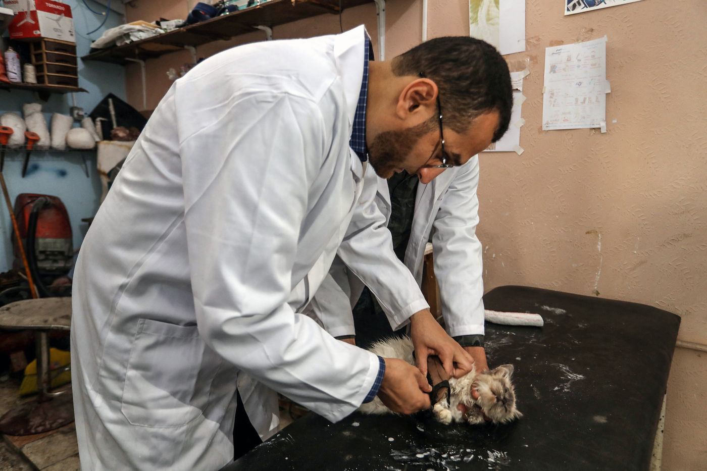 RAFAH, GAZA STRIP - MAY 23. Palestinian Dr. Muhammad al-Khalidi, a Jabour (orthopedic) specialist, and the sister of Eng. Yousef al-Khalidi, an animal veterinarian, and for the first time in the Gaza Strip, open a clinic to take care of animals and birds from fractures. There are their care of treatment and redress of fractures. In the city of Rafah in the southern Gaza Strip, on May 23, 2022.