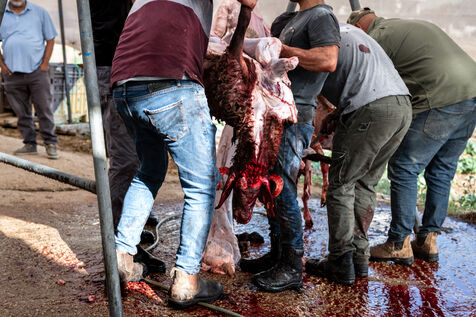 Alors que les célébrations de l'Aïd al-Adha commencent tandis que la guerre a Gaza fait rage et que la Cisjordanie fait face a des difficultés économiques majeures, les musulmans palestiniens qui peuvent se le permettre offrent leur sacrifice à Dieu en tuant un mouton ou une chèvre - en souvenir du prophète Ibrahim qui était prêt à sacrifier son fils en soumission a Dieu- et en donnant une partie importante de la viande aux pauvres ou dans le besoin.