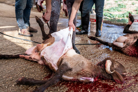 Les propriétaires d'un mouton qui ne souhaitent pas procéder au sacrifice eux-mêmes l'apportent au fermier Jadallah qui fera procéder à l'égorgement tout en priant Dieu et en faisant en sorte que le mouton ne voie pas le couteau.
