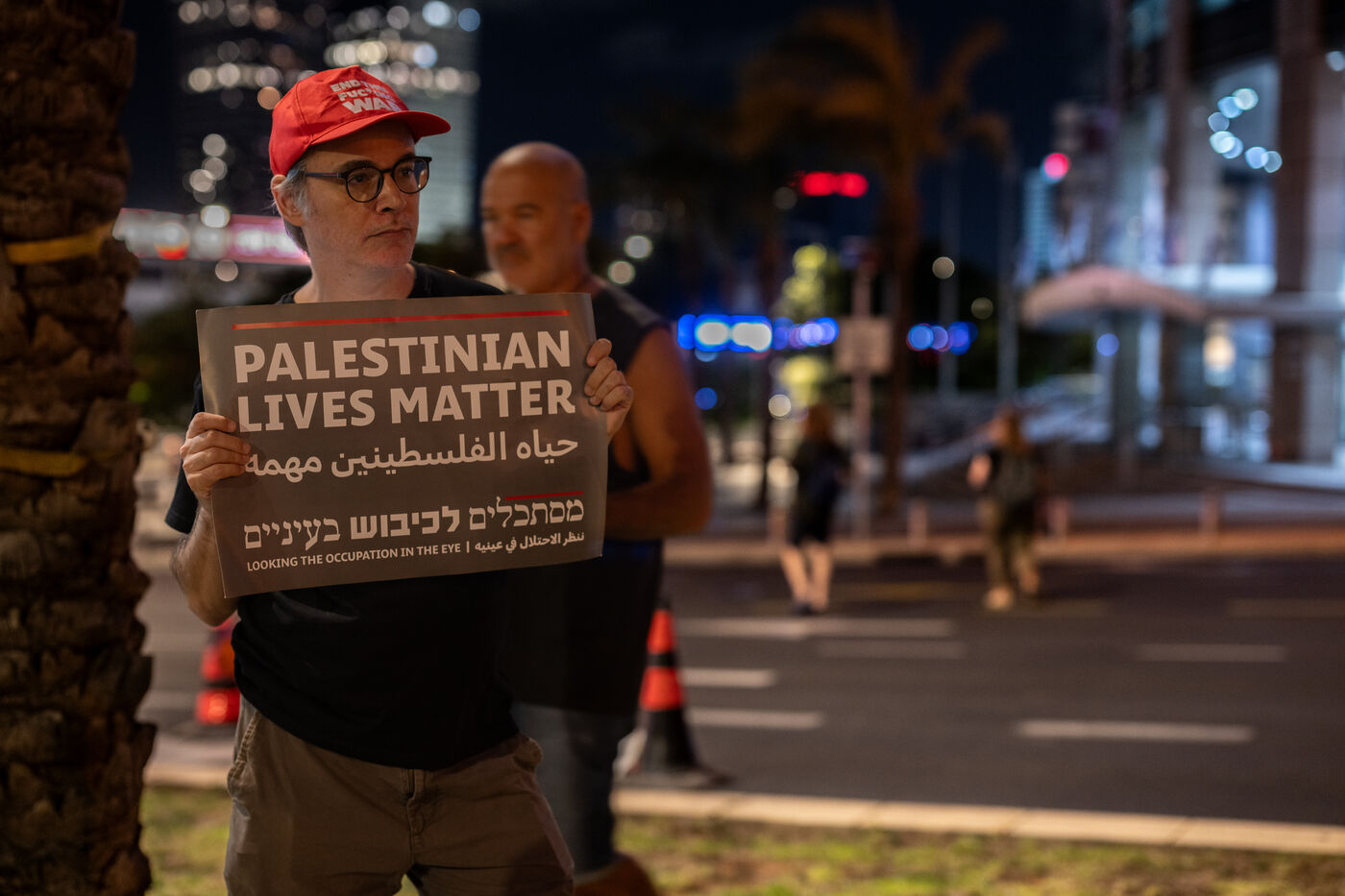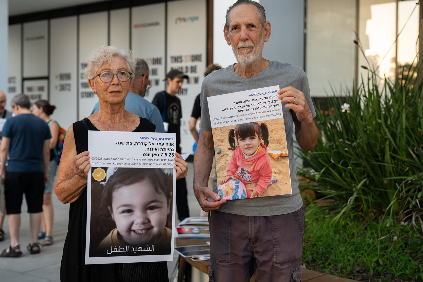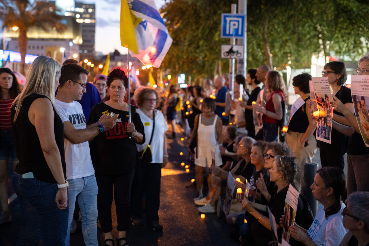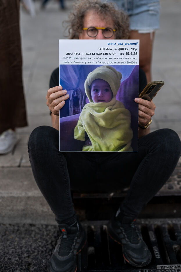 Hundreds of Israelis opposing war stand and sit in the street in a silent and peaceful action, showing photos of Palestinian children from Gaza and the West Bank killed since Israel broke the ceasefire in March 2025, as new ceasefire negotiations are in progress. The vigil took place between Hostages Square and Begin Gate in Tel Aviv—symbolic sites of rallies calling for the release of Israeli hostages held by Hamas in Gaza—creating a space for acknowledging and raising awareness of the reality faced by Palestinians, for exchange, discussion, and sometimes silent confrontation.