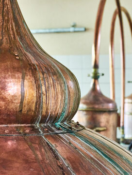 Clovis Reymond distille depuis 1834 dans des alambics en cuivre