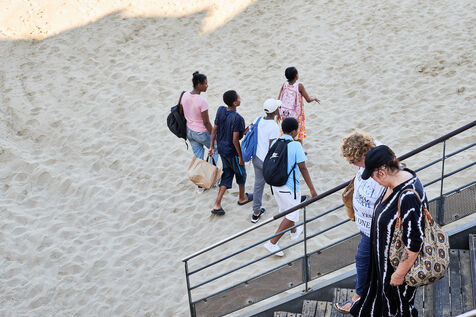 Un groupe d'enfants issus de la Cité Felix Pyat à la plage des Catalans.