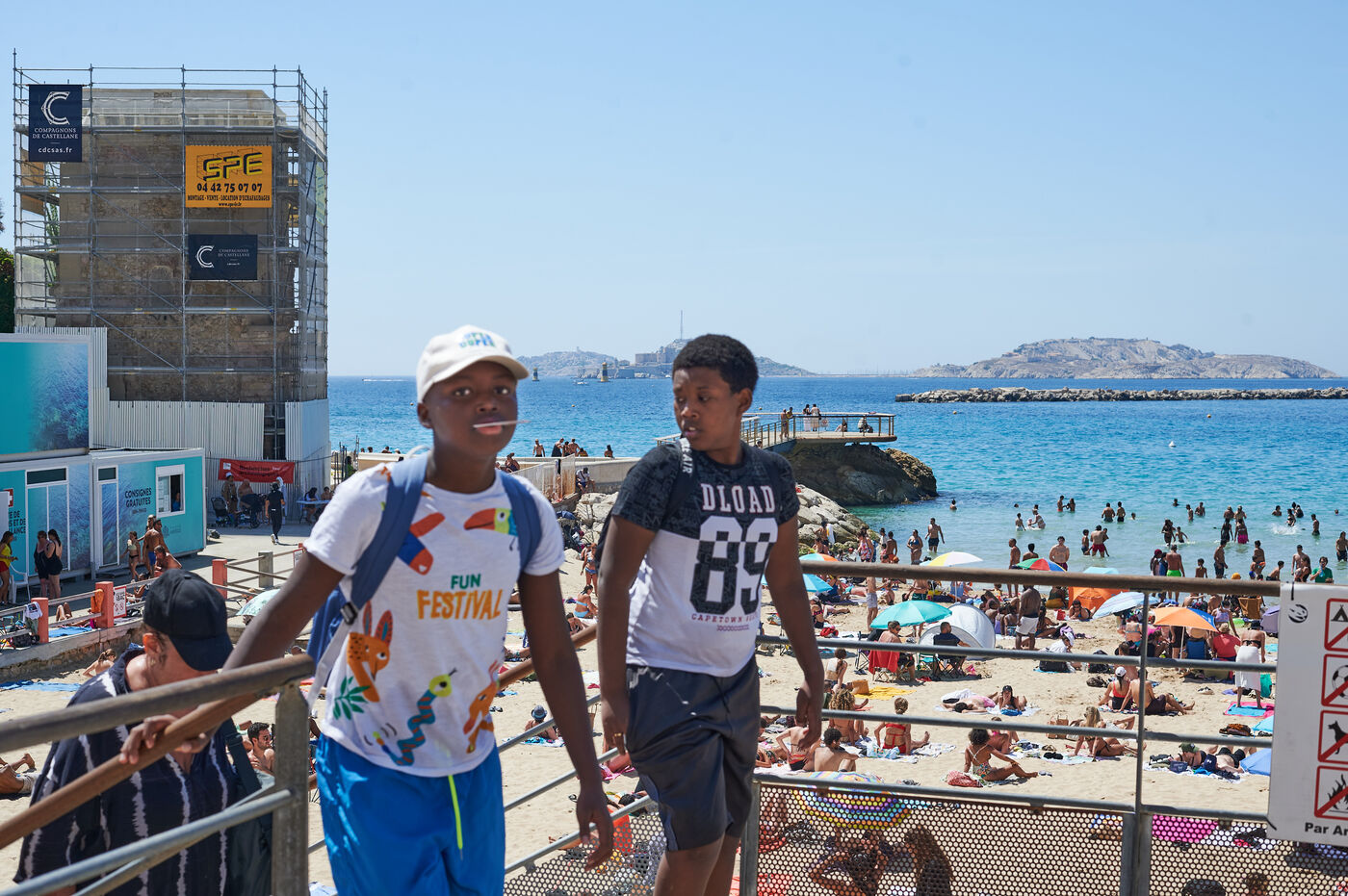 A group of children from the Cité Felix Pyat at the Catalans beach.