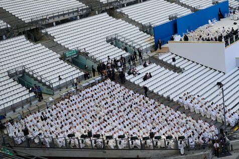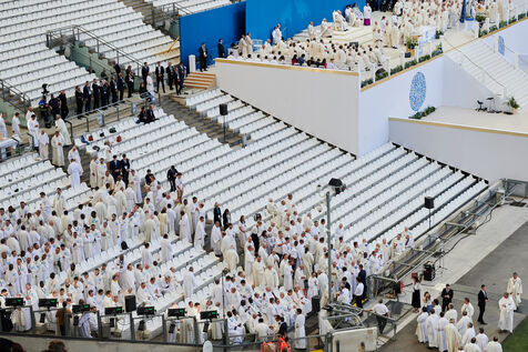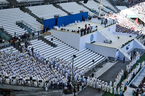 Le Pape François célèbre sa premiere messe en France depuis le début de son pontificat, devant 60 000 personnes au stade Vélodrome.