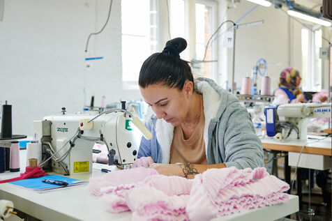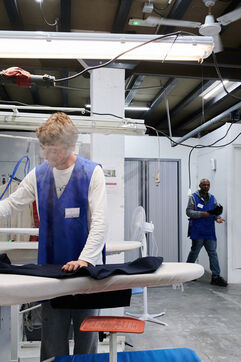 Fil Rouge, a company specialising in sportswear products and chaired by Jean-Francois Aufort, is working with an Insermode integration centre to relocate skills in the textile industry. In this way, 250 employees in Marseilles are boosting the textile industry and "Made in France". 180 people (out of the 250 employees) who are not in employment are following a personalised integration programme lasting up to 2 years ("Parcours Emploi"). This represents 22 nationalities and 141 FTEs. 80% are women. Visit to the main workshops: sewing, cutting, ironing, etc.