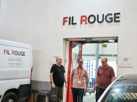 L'entreprise Fil Rouge, spécialisée dans les produits sportswear, présidée par Jean-Francois Aufort s'adosse à un chantier d'insertion Insermode et relocalise les compétences de la filiere textile. 250 salariés marseillais dynamisent ainsi la filiére textile et le "Made in France". 180 personnes (sur les 250 salariés) éloignées de l'emploi, suivent un parcours personnalisé d'insertion d'une durée maximale de 2 ans ("Parcours Emploi"). Cela représente 22 nationalités, 141 ETP. 80% sont des femmes. Visite des ateliers principaux : couture, coupe, repassage...