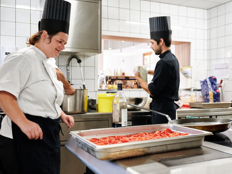 Chef Sandrine Sollier runs the bistronomic restaurant Les Beaux Mets - France's first restaurant open to the public in a prison environment. This bistronomic restaurant in Marseilles is located in the Les Baumettes prison, within the Structure d'Accompagnement vers la Sortie (SAS). The kitchen assistants are prisoners who have been trained to help them return to work once they have served their sentence.