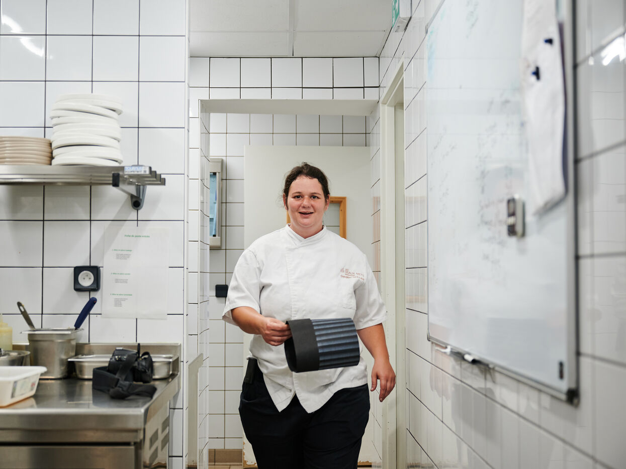 La cheffe Sandrine Sollier officie au restaurant bistronomique les Beaux Mets - premier restaurant ouvert au public en France, en milieu carcéral. Cette table bistronomique marseillaise est installée dans l’enceinte de la prison Les Baumettes, au sein de la Structure d’Accompagnement vers la Sortie (SAS). Les commis de cuisine sont des détenus qui sont formés pour faciliter leur retour à l’emploi, une fois leur peine purgée.