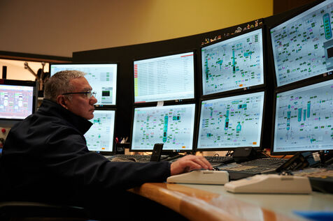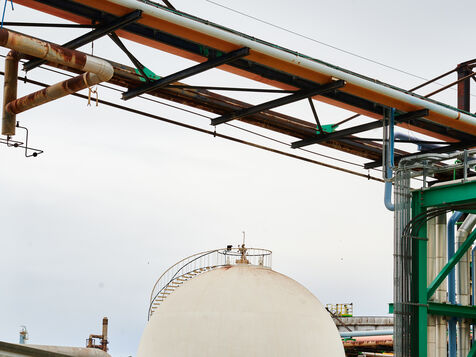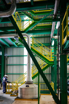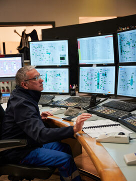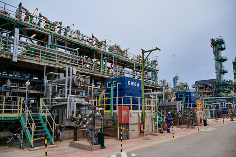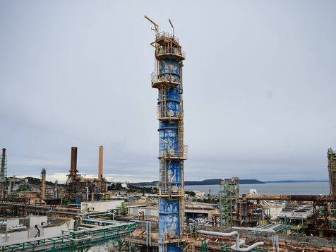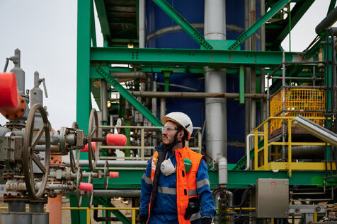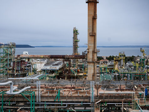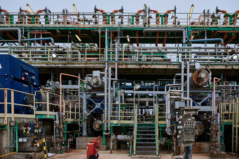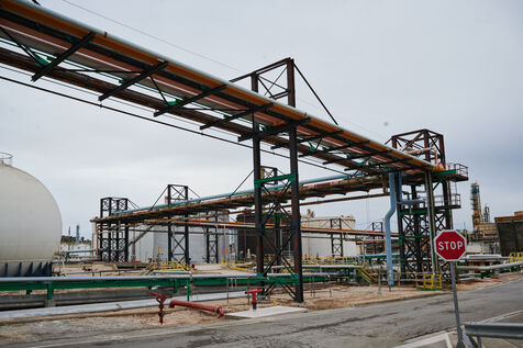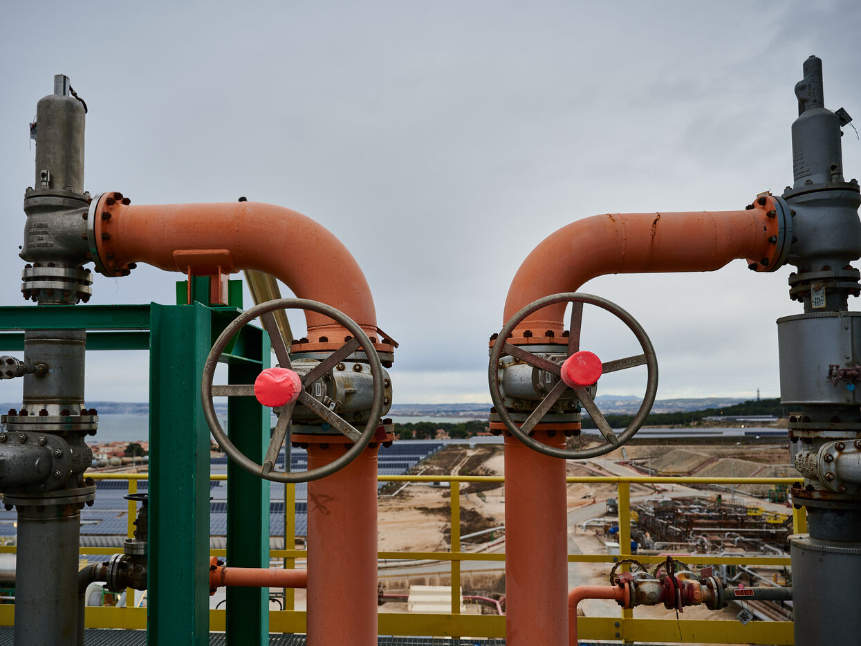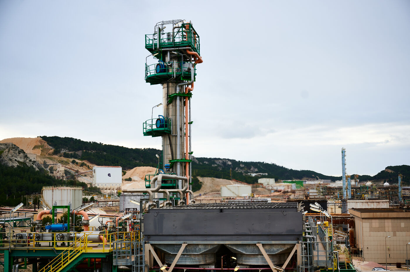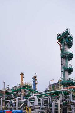 Illustrative photos of Total Energies' biorefinery (La Mède site): platerform, site, control and pre-treatment units.