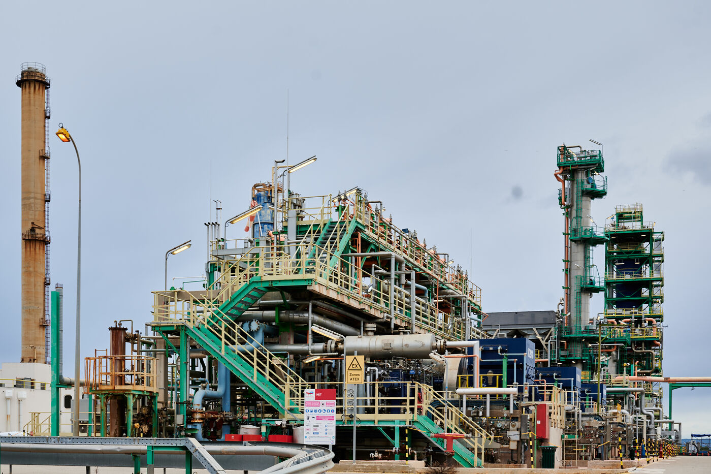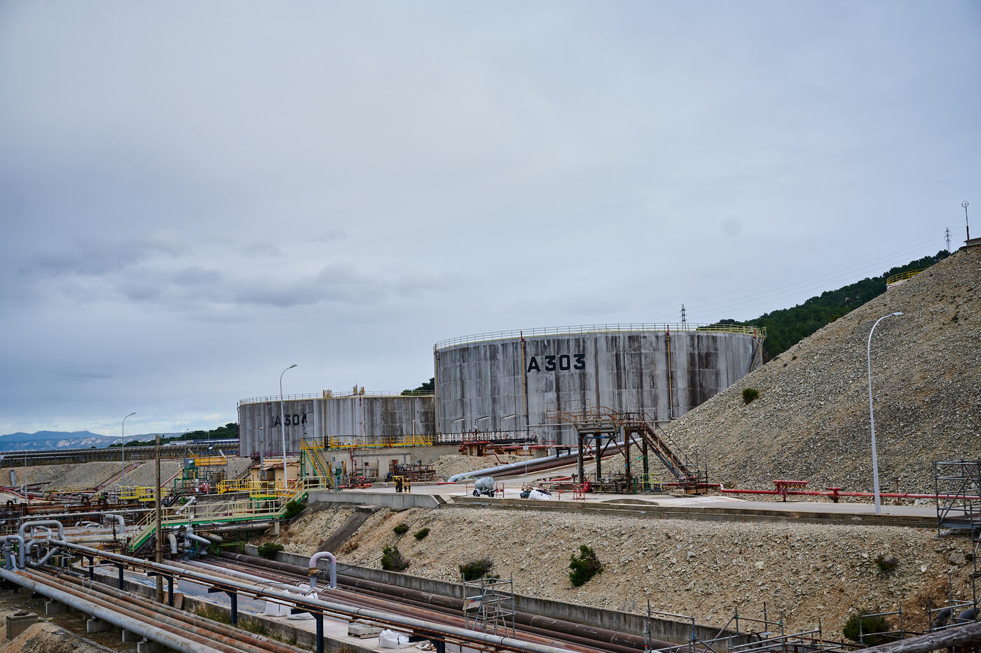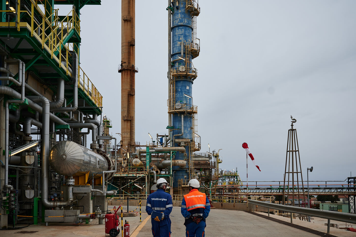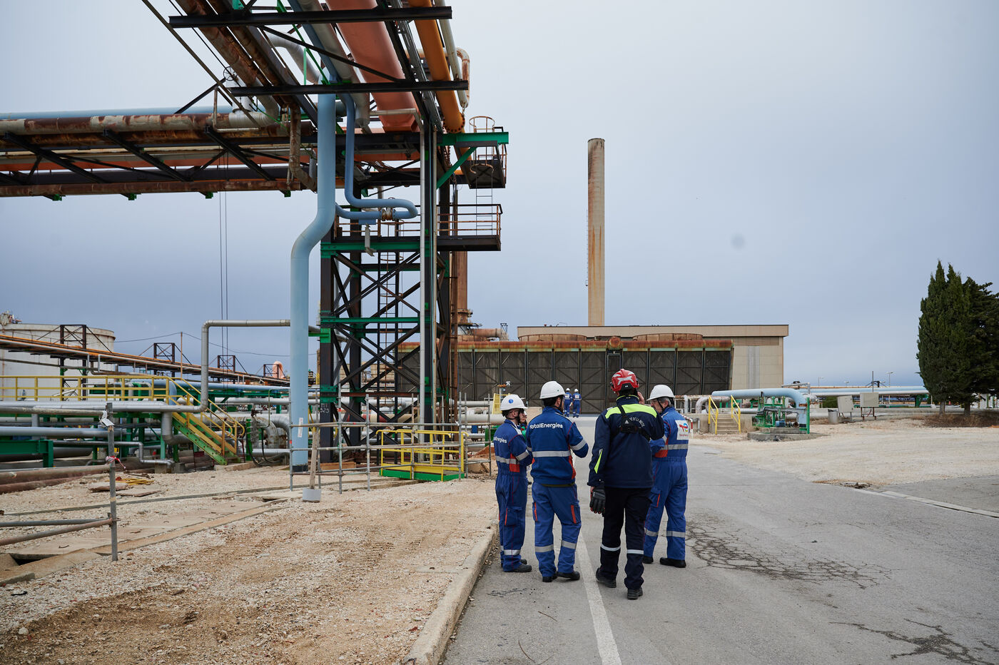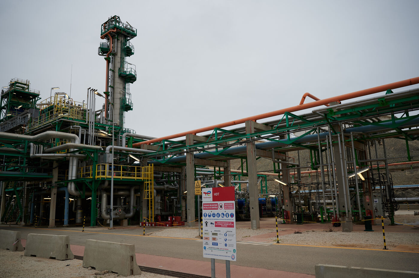 Photos d'illustration de la bioraffinerie (site de La Mède) de Total Energies : platerforme, site, unités de contrôle et de pré-traitement.