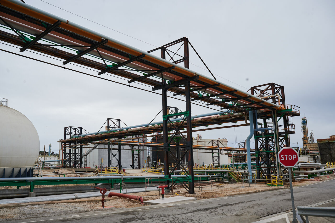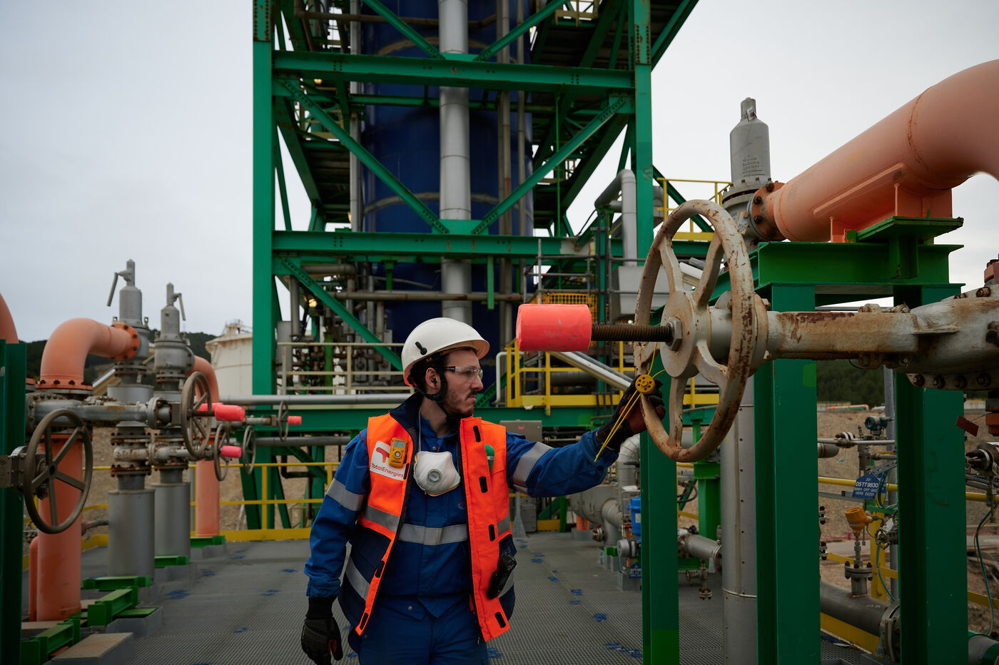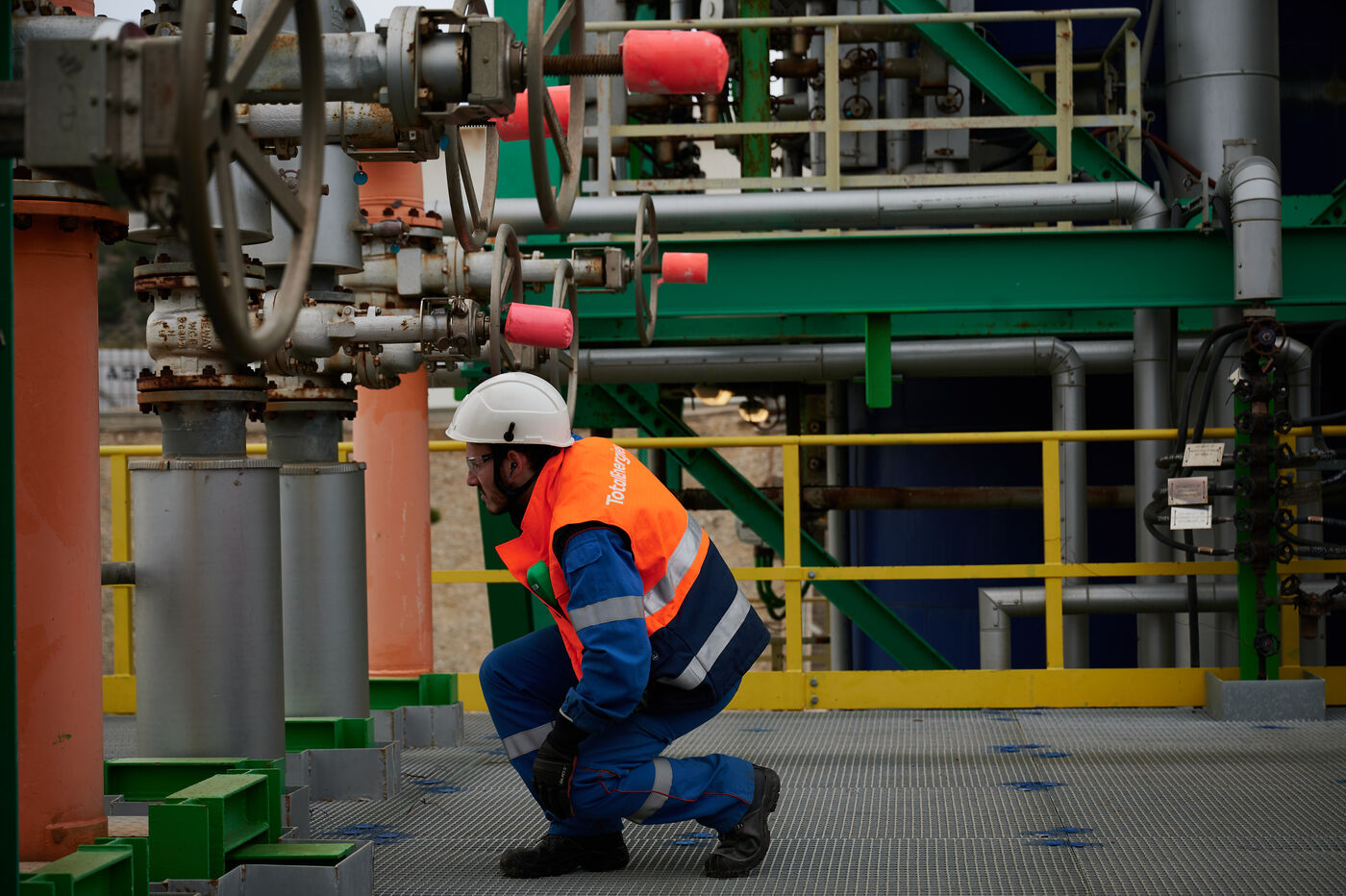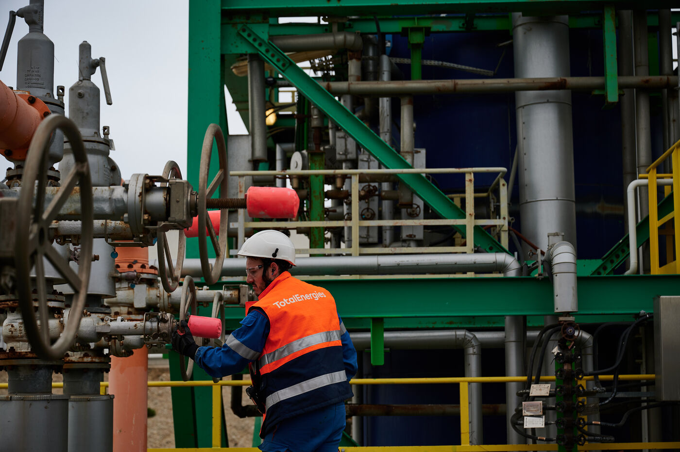 Photos d'illustration de la bioraffinerie (site de La Mède) de Total Energies : platerforme, site, unités de contrôle et de pré-traitement.