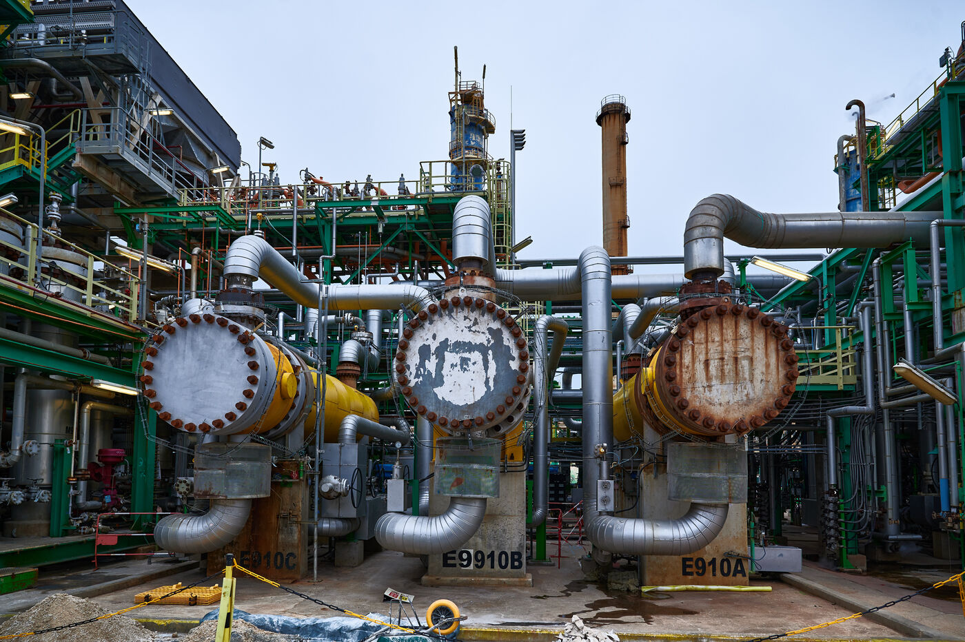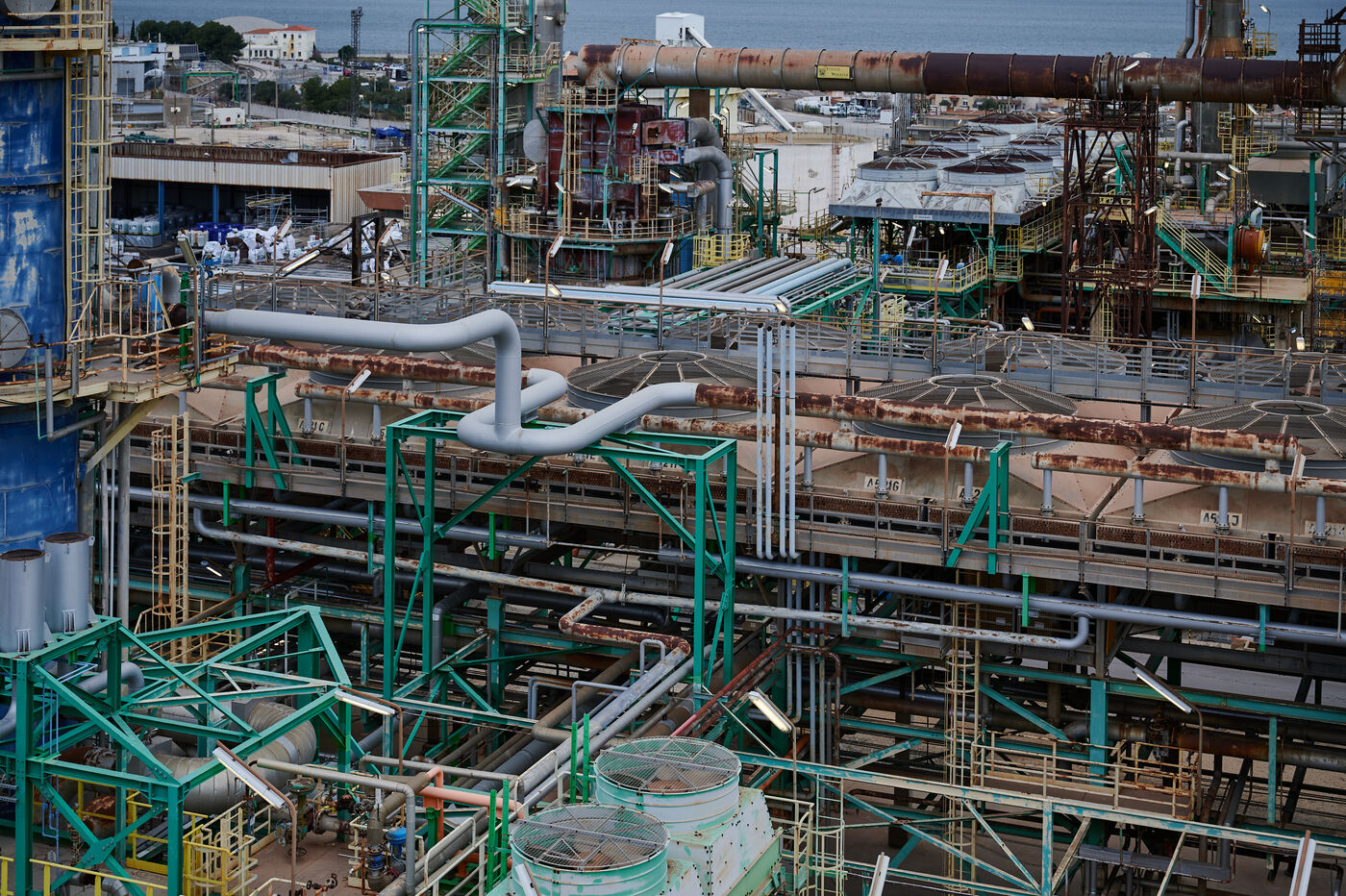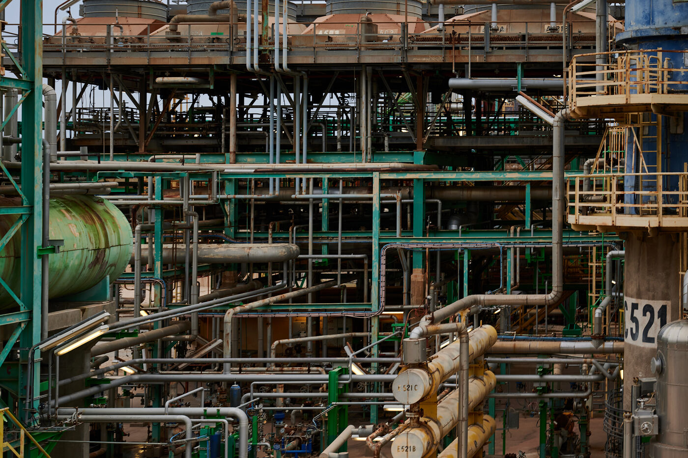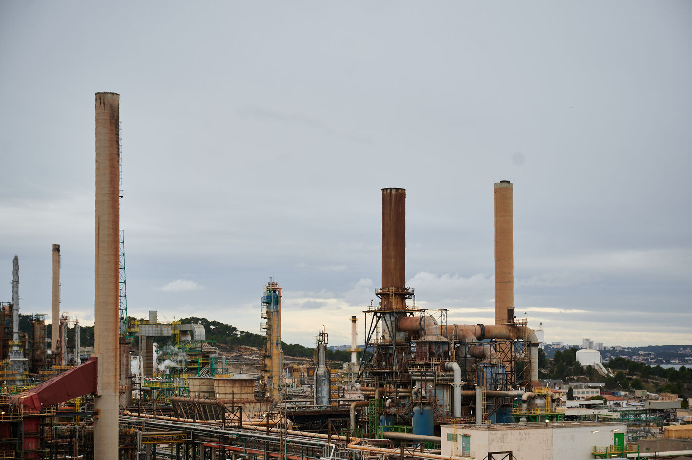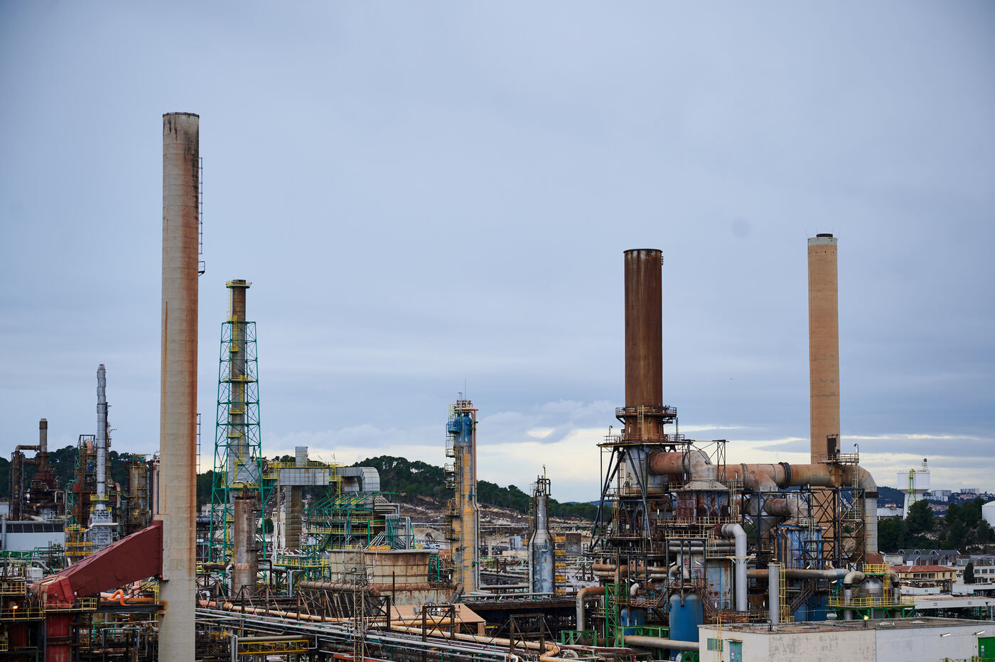 Photos d'illustration de la bioraffinerie (site de La Mède) de Total Energies : platerforme, site, unités de contrôle et de pré-traitement.