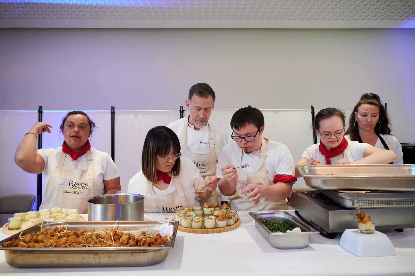 The 21 Rêves association organised the first inclusive culinary competition at the Domaine de la Galinière, bringing together young people with Down's syndrome and 5 renowned chefs from Provence: Sébastien Richard, Mickaël Feval, Fabien Torrente, Christophe Pulizzi and Christophe Thullier.
