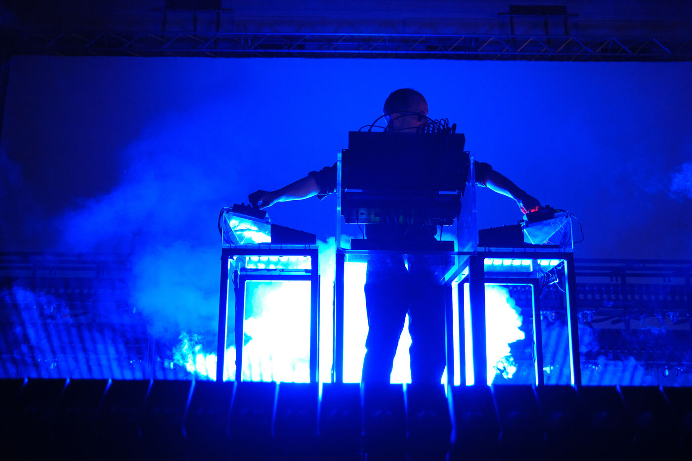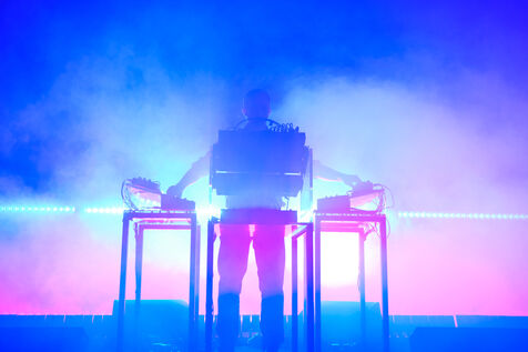 DJ and producer Etienne de Crecy, the iconic figure of the French Touch movement, performing at the Full Moon Party in Marseille.