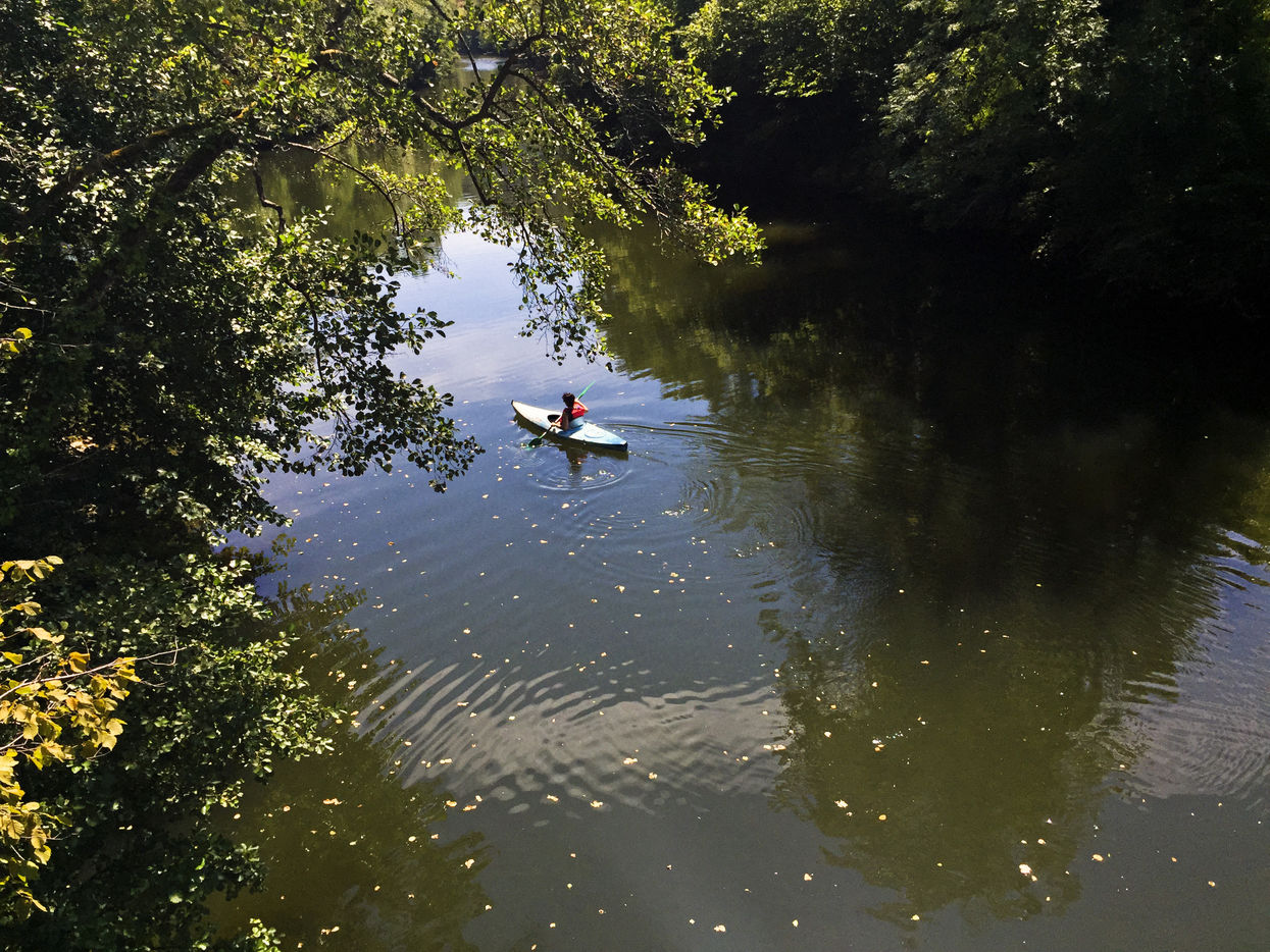 Je suis dans mon kayak et glisse sur la rivière en spectateur ému.