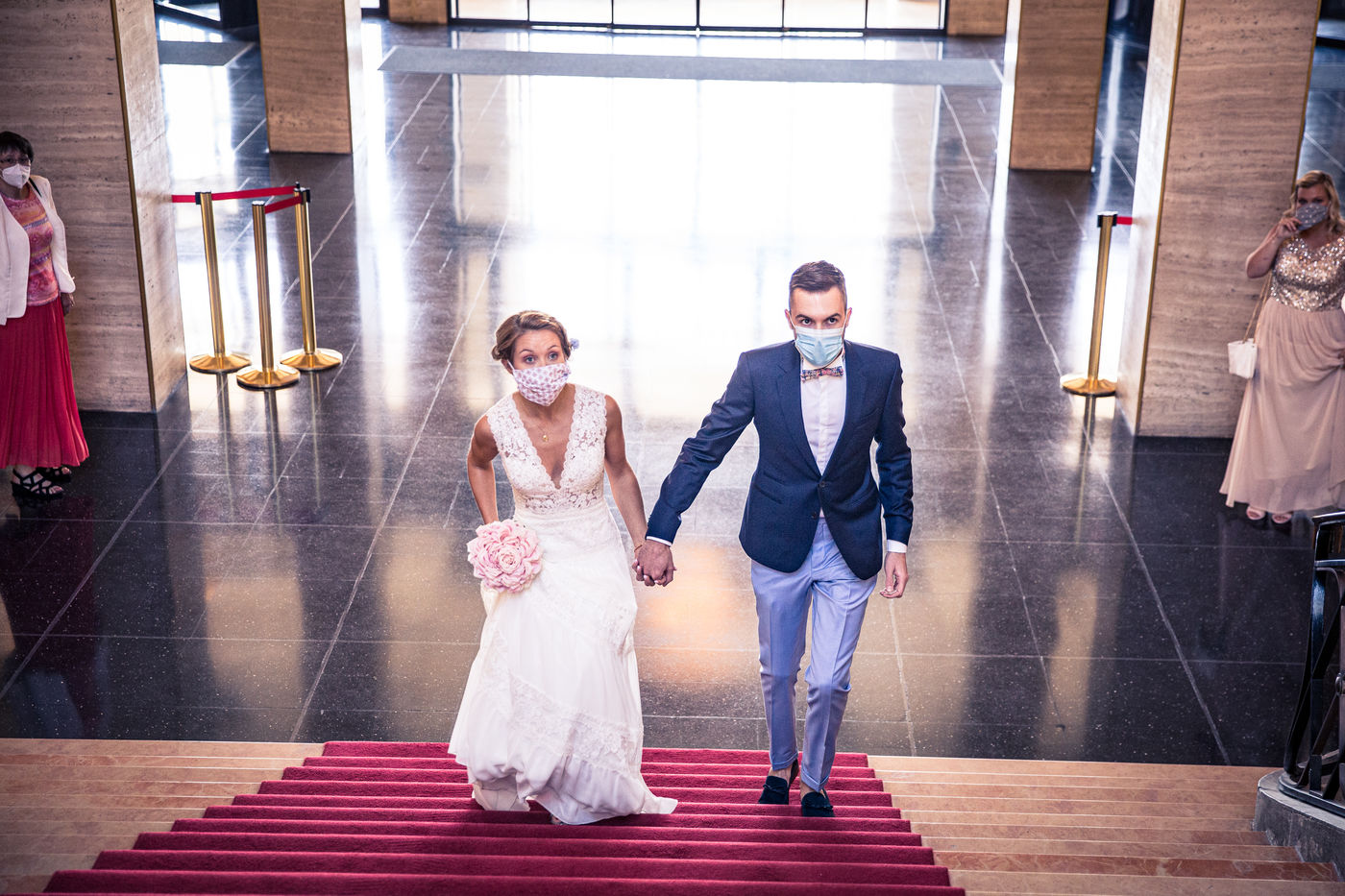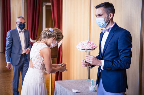 At the end of the confinement, in May 2020, a young Norman couple decides to maintain their marriage and celebrates this union despite the imposition of anti-covid, mask and social distancing health rules at the Le Havre town hall.