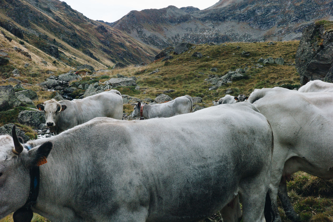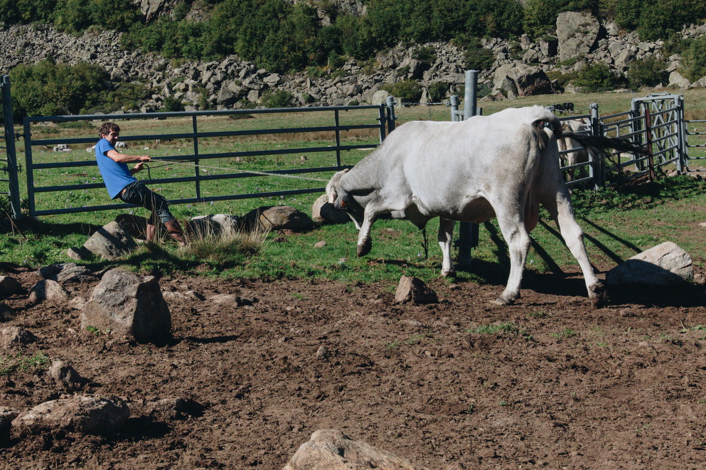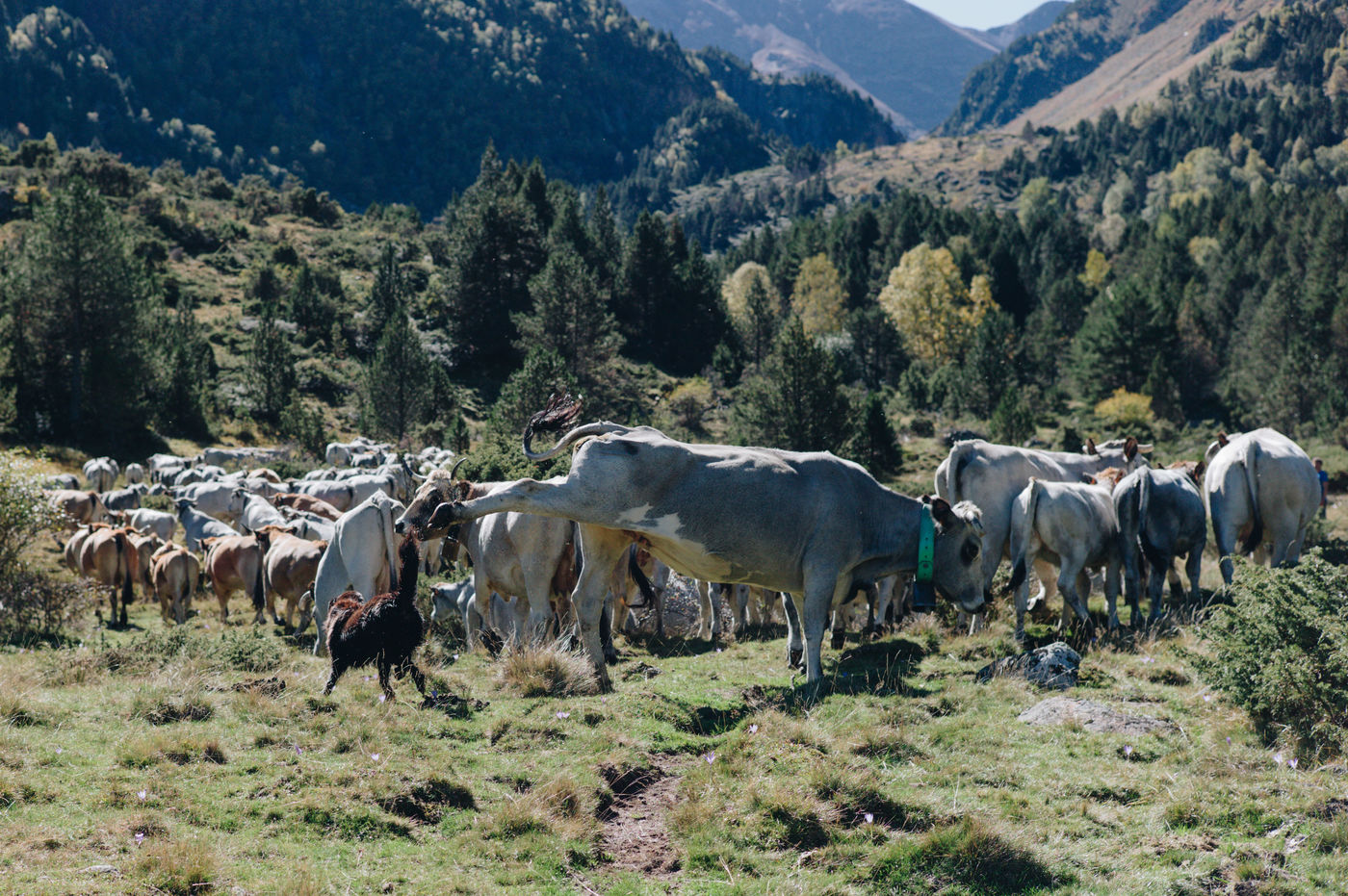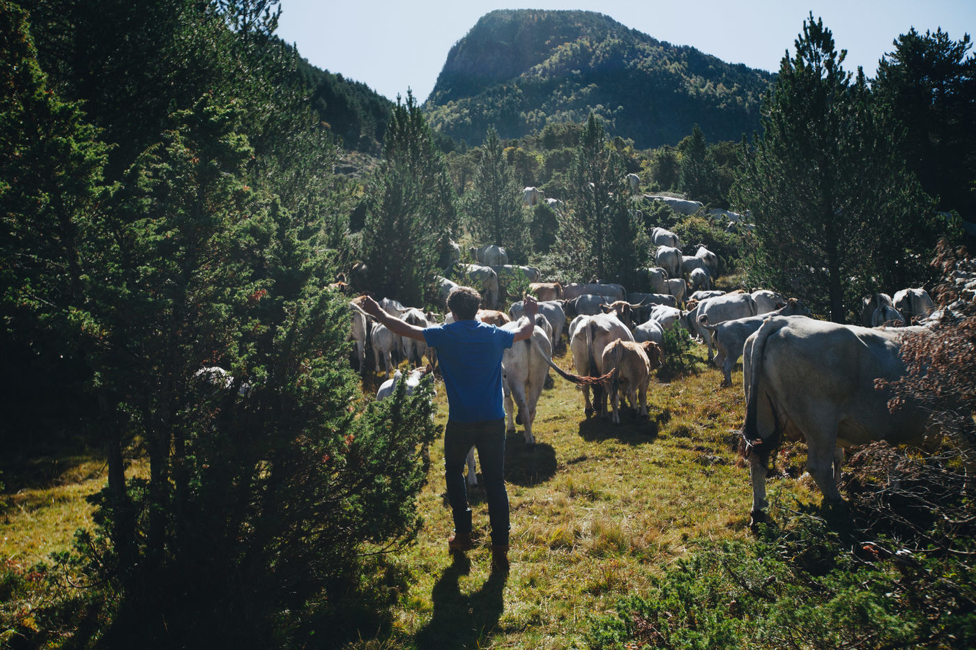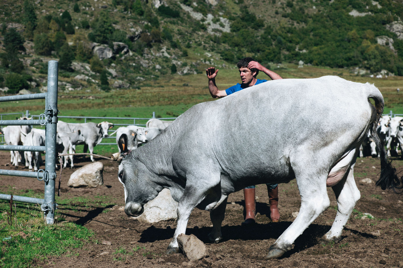 In the mountains deserted by men, tragedies are played out, reflecting the ancient landscapes. Early October marks the end of summer in the Ariège mountains. Gasconnes, Limousines, Aubracs, Swiss, Crusaders graze quietly in the browning valley. The stealthy sun rises over this territory in the icy wind where soft grass is scarce. Despite his 20 years of experience, Brice Delsouiller is never at the end of his surprises with these animals: they travel everywhere, from the grassy plateau at an altitude of 1600 metres where his hut without running water or electricity is located, to the edge of the rocky slopes of the peaks reaching 2400 metres. It is these scenes of life and death, without defect or excess, that Brice invited us to share for a few days. Uniting his vision of extensive livestock farming and his poetic reading of the wild world, he harmonizes the old and the new, deconstructs the pastoral idyll and awakens in us the power of the present. It is accompanied by his herd in the mountain amphitheatre, far from the brilliant civilization of sterile progress, for 5 months a year, that Brice has chosen to live his freedom, in the immemorial certainty of nature.