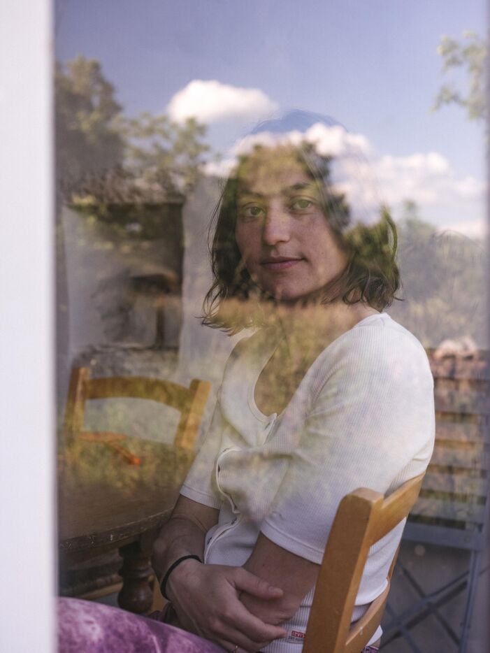 Portrait of the writer Adele Yon at home, in the house where she wrote her first book titled "Mon vrai nom est Elisabeth". After investigating the fate of her great-grandmother, who was institutionalized and lobotomized, she explores in this novel the silences of family lineage and the blind spots of memory. A graduate of the École Normale Supérieure and a restaurant chef, she now embraces a personal, complex, and liberating narrative, written in the quiet of a secluded house in the Lot region. Photograph by Anita Volker & Cyril Caine / Hans Lucas.