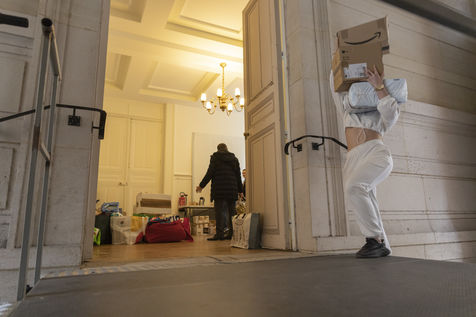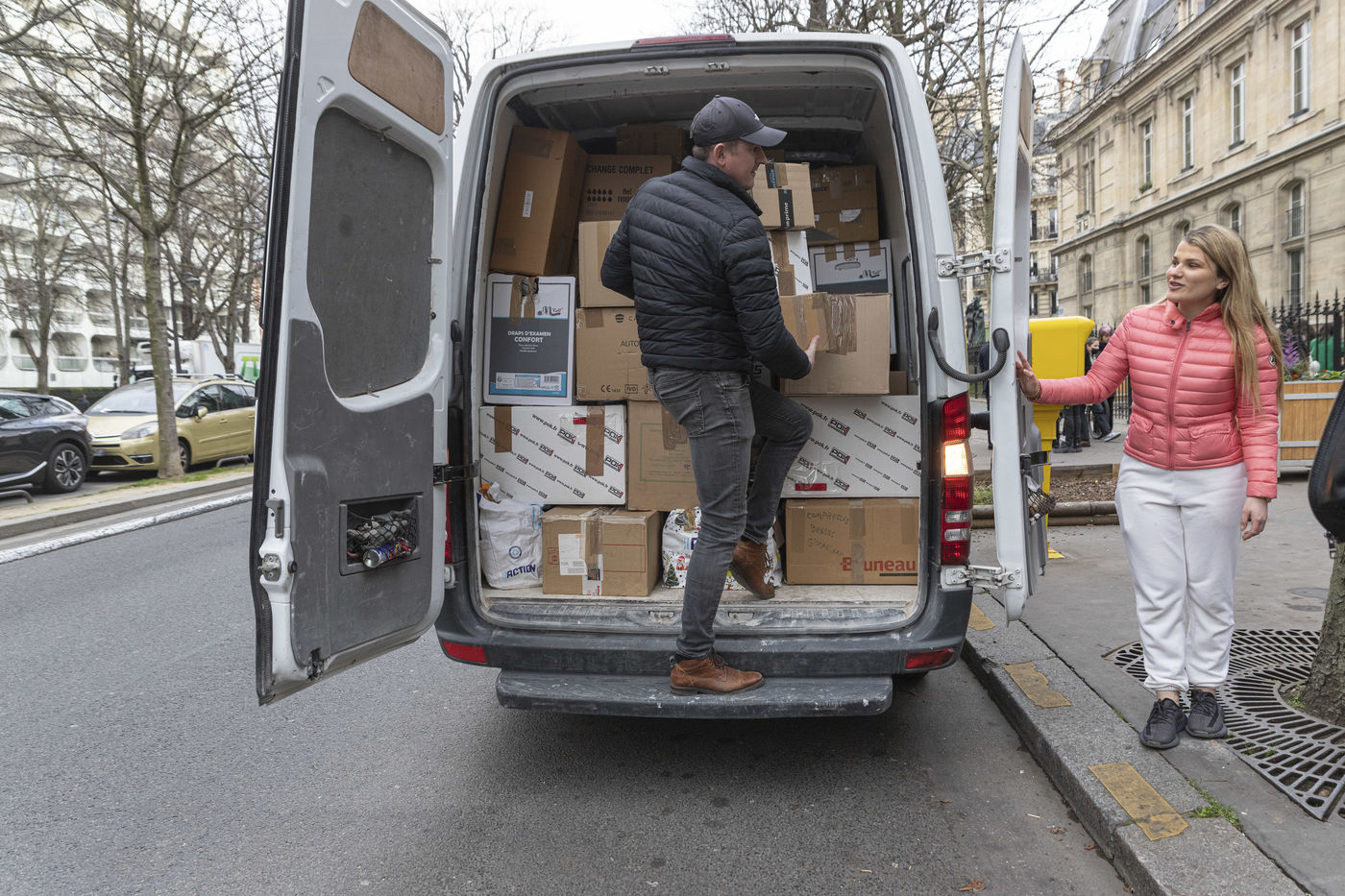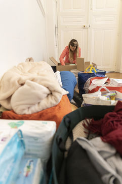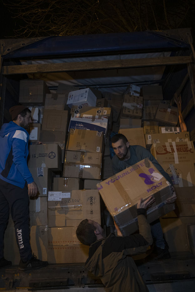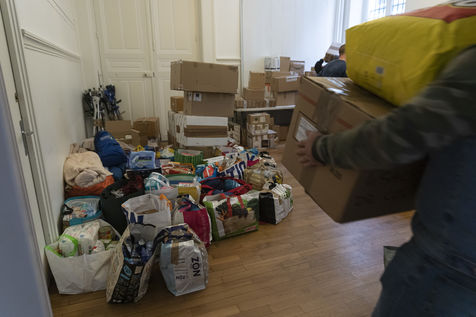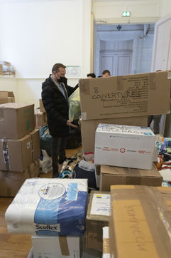 This room will also be used as a depository to gather and centralize all the donations received throughout France. Because today the truck sent by the diaspora is a little bigger than usual. Indeed, it is a twenty-four tons truck that is waiting for them on the outskirts of the Parisian ring road because it is too big to enter the city. For nearly two hours, the thirty or so young people present loaded the truck, box by box, forming a human chain. So many donations have been pouring in over the last few days that some of them will have trouble fitting into the huge trailer. Mikhaylo even had to refuse two 18m3 vans that were still to arrive from the province. But it is only a postponement for a future departure.