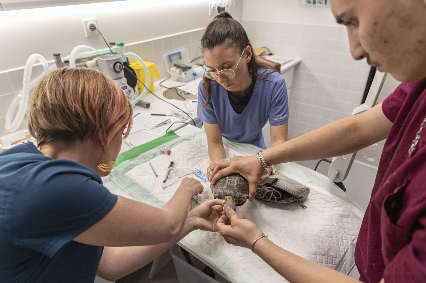 Malgré un cursus déjà long, les vétérinaires ont dû évoluer et se spécialiser davantage dans les animaux à soigner pendant leur carrière. Sur plusieurs semaines j'ai eu la chance de pouvoir suivre la vétérinaire Mélanie Coquelle, spécialiste des NACs, auparavant vétérinaire « itinérante » elle allait de clinique en clinique à travers l'Île-de-France pour apporter son expertise sur ces nouveaux compagnons. Mais avec l'augmentation du nombre de propriétaires en quelques années, Mélanie à pris la décision de se sédentariser et de prendre ses quartiers dans une toute nouvelle clinique au coeur de Paris, où un espace NAC a été aménagé spécialement pour elle. C'est donc maintenant les propriétaires qui font parfois des dizaines de kilomètres pour que leur animal passe entre les mains de la vétérinaire et de son équipe.