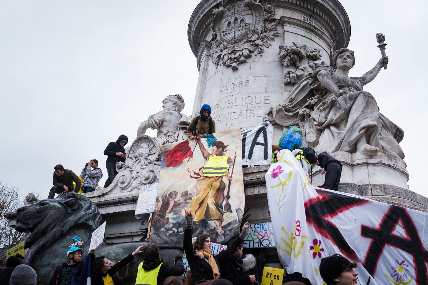 Act IV yellow vests in Paris, Saturday, December 8, 2018. At the end of the day 1380 people had been arrested throughout the territory, including 1,150 in Paris alone. For the entire territory, 89,000 members of the police force are mobilized, including 8,000 in Paris supported by 14 "VBRG" armored wheeled vehicles of the gendarmerie deployed for the first time in their history in the capital.