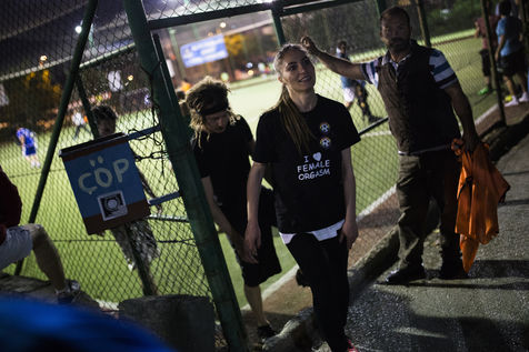 Au milieu de cette grande récréation, les membres de la Sportif Lezbon enfilent leurs maillots. Dans ce monde masculin leur slogan « I love Woman Orgasm » tranche nettement avec les blagues des potes de ballon. Dans un pays où l'homosexualité est tolérée mais dans lequel aucun texte de loi ne protège les personnes homosexuelles, investir le champ du football relève du défi pour cette équipe LGBT (gay lesbien transexuelles) bisexuel hors norme.
