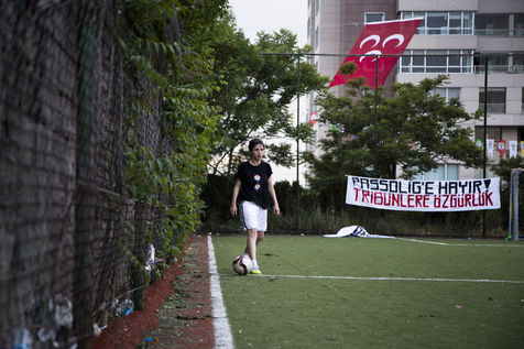 Dans la banlieue d'Ankara, les lampes éclairent les terrains de « Dikmen hali saha ». On y loue pour une heure ou deux un stade miniature pour taper dans le ballon entre mecs, mouiller le maillot, oublier dans la sueur et les frappes hasardeuses la journée de boulot.