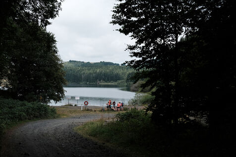 France, lac de Montcineyre, Auvergne, 2022-07-23. Réservoir naturel d'eau potable, le lac de Montcineyre appartient au syndicat mixte de l'eau de la région d'Issoire, dans le département du Puy-de-Dôme en France. La baignade et le canoë sont interdits et un gardien surveille le lac jour et nuit pendant les mois d'été. Frédéric Bichon en est le responsable depuis dix ans.
